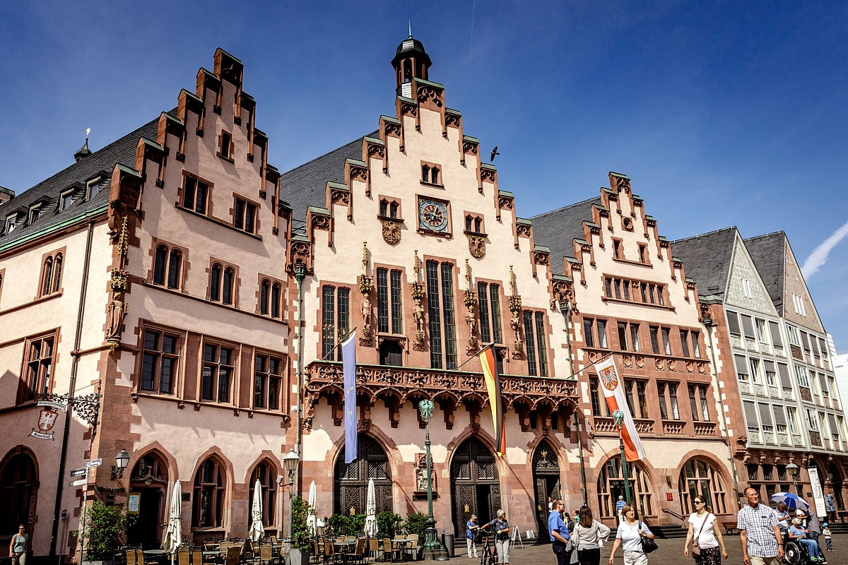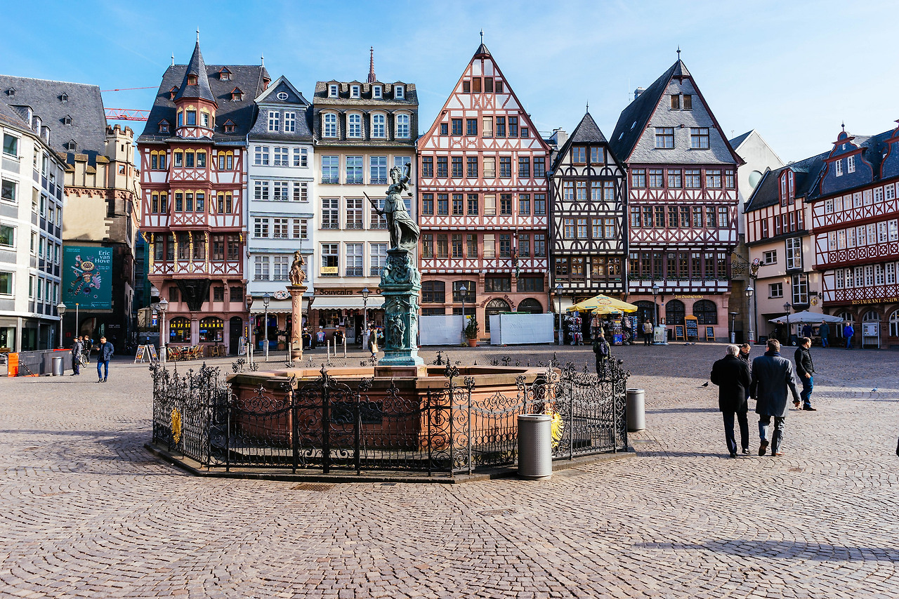 프랑크푸르트에서 최고 번화한 거리인 자일 거리를 지나면 구시가의 중심지인 뢰머 광장이 나온다. 뢰머광장은 신성로마제국 황제의 대관식이 끝난 후 축하연이 열렸던 장소로 중세 이래로 600년간 시청사로 사용된 뢰머와 니콜라이 교회 그리고 역사박물관이 들어서 있으며 광장 중앙에는 정의와 법을 담당하는 유스티티아 여신이 한 손에는 검을, 한 손에는 저울을 들고 있다.