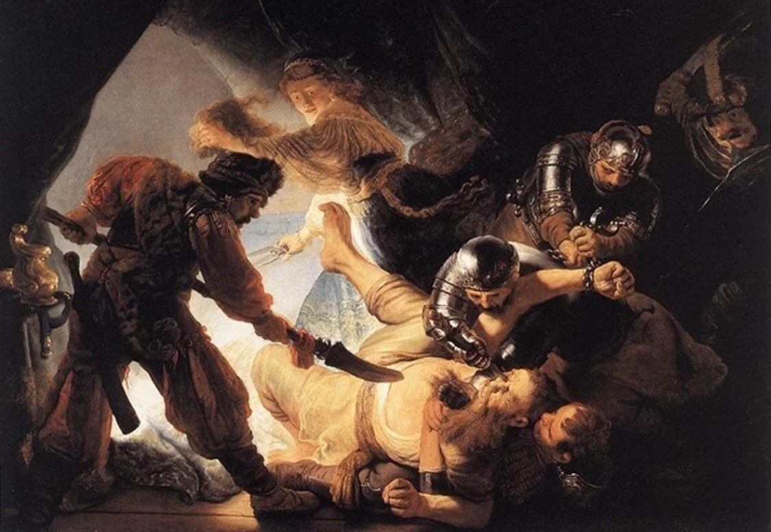 마지막으로 이상적인 아름다움을 보여주던 르네상스 시대를 지나 인간의 복잡한 내면을 보여준 바로크 시대의 대표적인 화가인 렘브란트의 <삼손과 데릴라>를 감상하자.