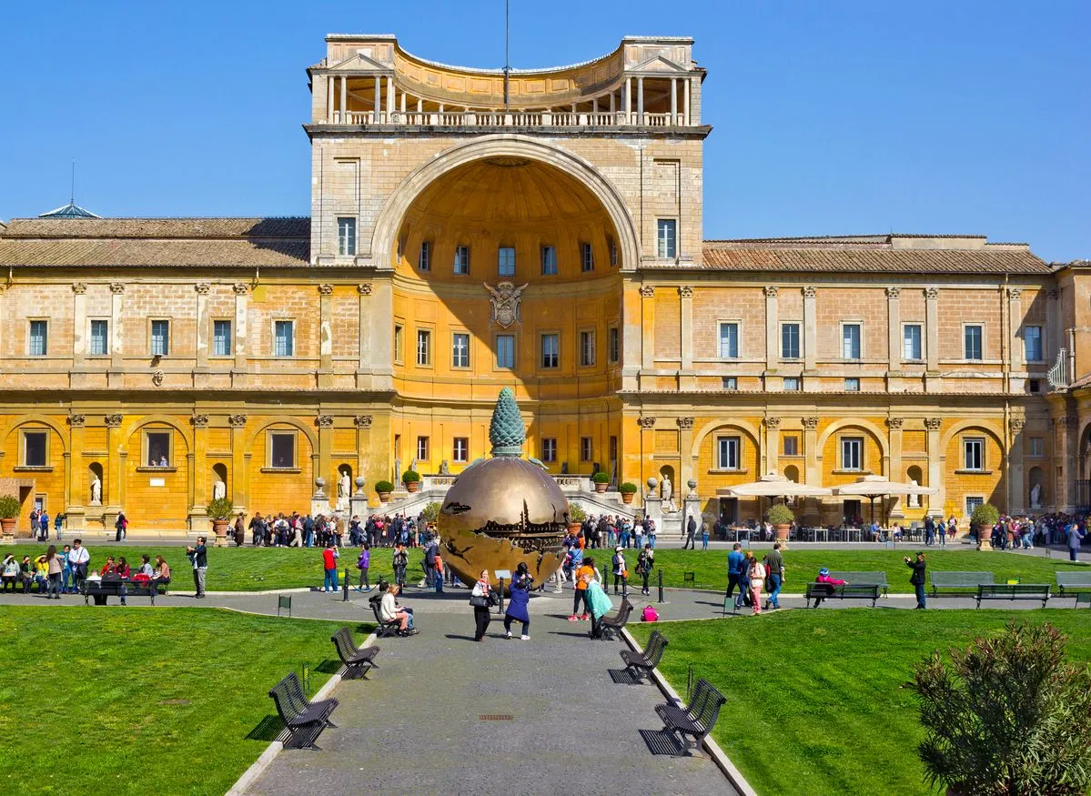 바티칸 박물관 입구 위에는 교황청 문장을 사이에 두고 미켈란젤로와 라파엘로의 조각상이 있다. 조각 도끼를 들고 있는 사람이 미켈란젤로이며 붓과 팔레트를 들고 있는 조각상이 라파엘로이다. 두 천재의 작품을 보기 위해 전 세계의 관광객들이 매일 이곳에서 문전성시를 이룬다.