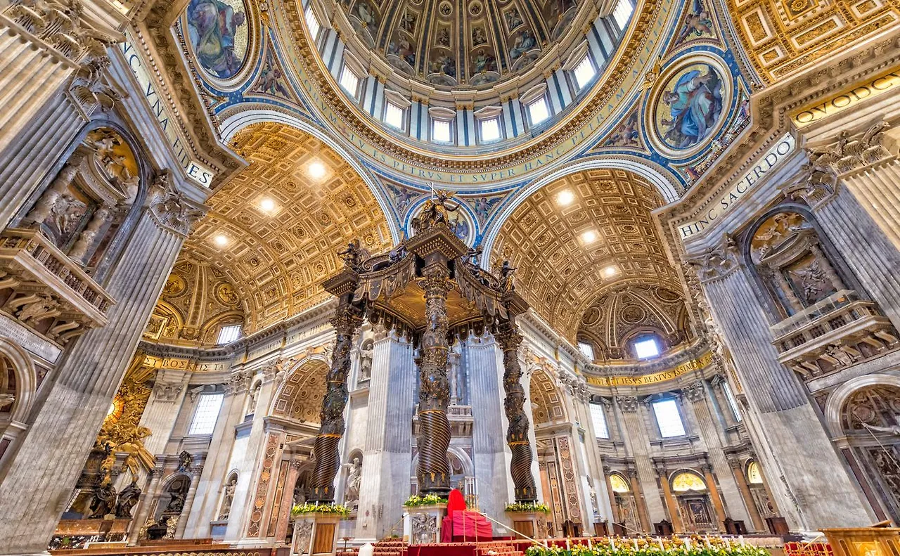 베드로의 조각상을 지나면 베드로의 유해를 보호하고 기리기 위해 청동으로 만든 거대한 발다키노가 있다.