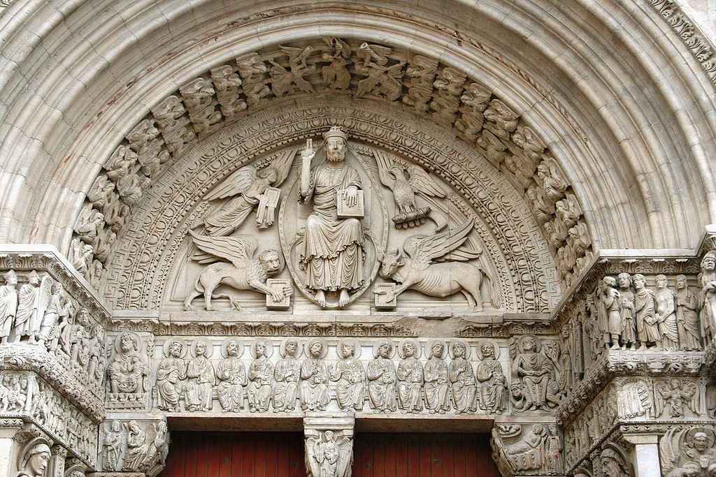 프로방스에서 가장 아름다운 로마네스크 양식으로 손꼽히는 생트로핌 성당의 입구에는 <최후의 심판> 부조가 새겨져 있다. 부조를 자세히 살펴보면 섬세하고 화려하게 새겨진 예수 주위로 4 복음서의 저자인 천사 모양의 마테와 사자모양의 마가 그리고 황소모양의 누가와 독수리 모양의 요한이 보인다. 현재 이 조각들은 프랑스의 세계문화유산으로 지정되어 있다.