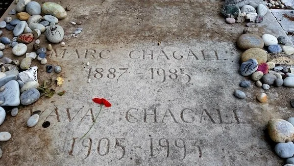 문패 하나라도 예술적 감수성이 차 있는 중세 마을의 집들과 돌로 만들어진 골목들을 지나 마을 입구 반대편으로 가면 샤갈의 무덤이 있는 공동묘지가 나온다. 입구를 지나자 이곳에 마르크 샤갈이 누워있다는 것만으로도 가슴이 두근거린다.