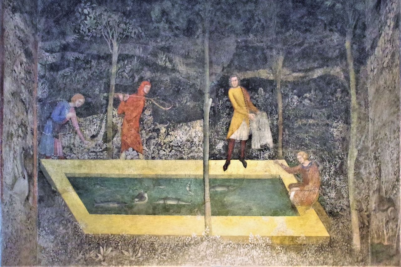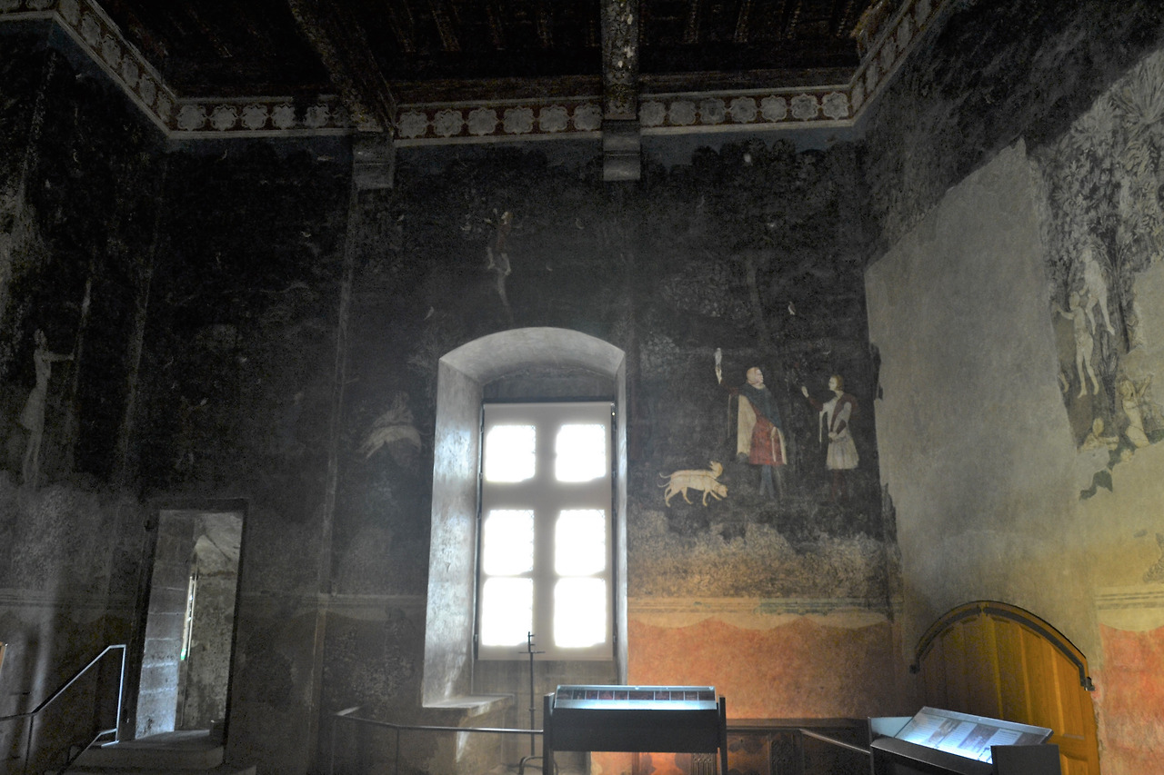 좁은 복도로 이어진 사슴 홀은 1343년 클레멘스 6세의 사냥 이야기를 담은 프레스코화로 장식되어 있다. 강력한 왕의 권력을 보여주듯 프레스코화에는 나무와 꽃이 만발한 평화로운 숲을 배경으로 클레멘스 6세가 당시 귀족적인 취미였던 사슴 사냥을 하고 있다. 그 옆으로 귀족들이 낚시와 열매를 따고 있는데 화면 전체적으로 환상적인 아름다움을 표현하고 있다.