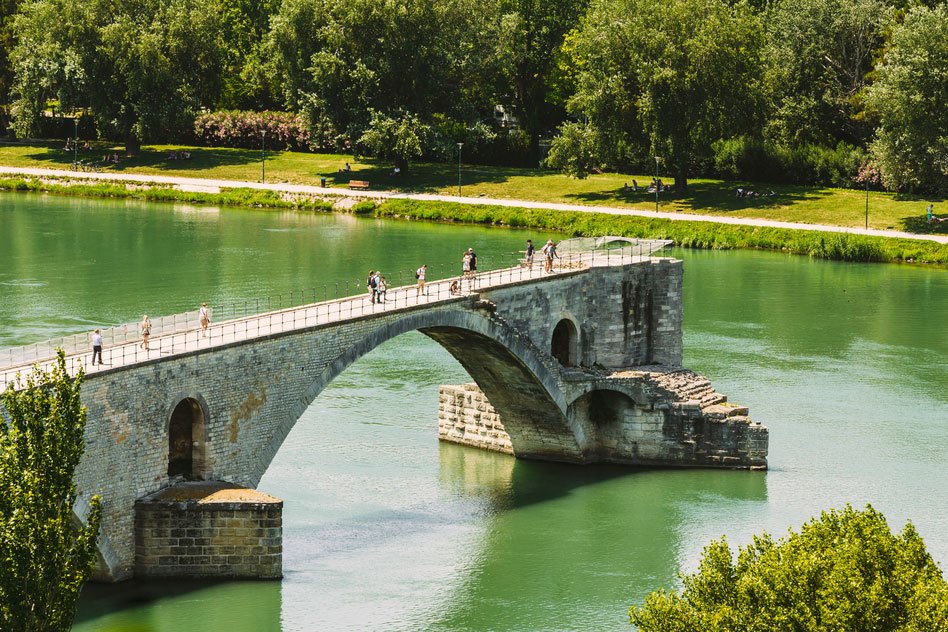 론강 위로 단절되었지만 우아함이 넘치는 생 베네제 다리는 21개의 교각에 22개의 아치로 이루어진 총길이 900 미터의 웅장한 다리였지만 1680년 대홍수로 현재 3개의 아치와 생 니콜라 예배당이 남은 상태로 보존하고 있다. 1185년에 다리가 완공되자 아비뇽은 이탈리아와 스페인으로 지나다니는 순례자들이 찾는 교통의 중심지로 부상하였다. 아비뇽 다리라고 불리는 생 배네제 다리에는 다음과 같은 전설이 내려온다.