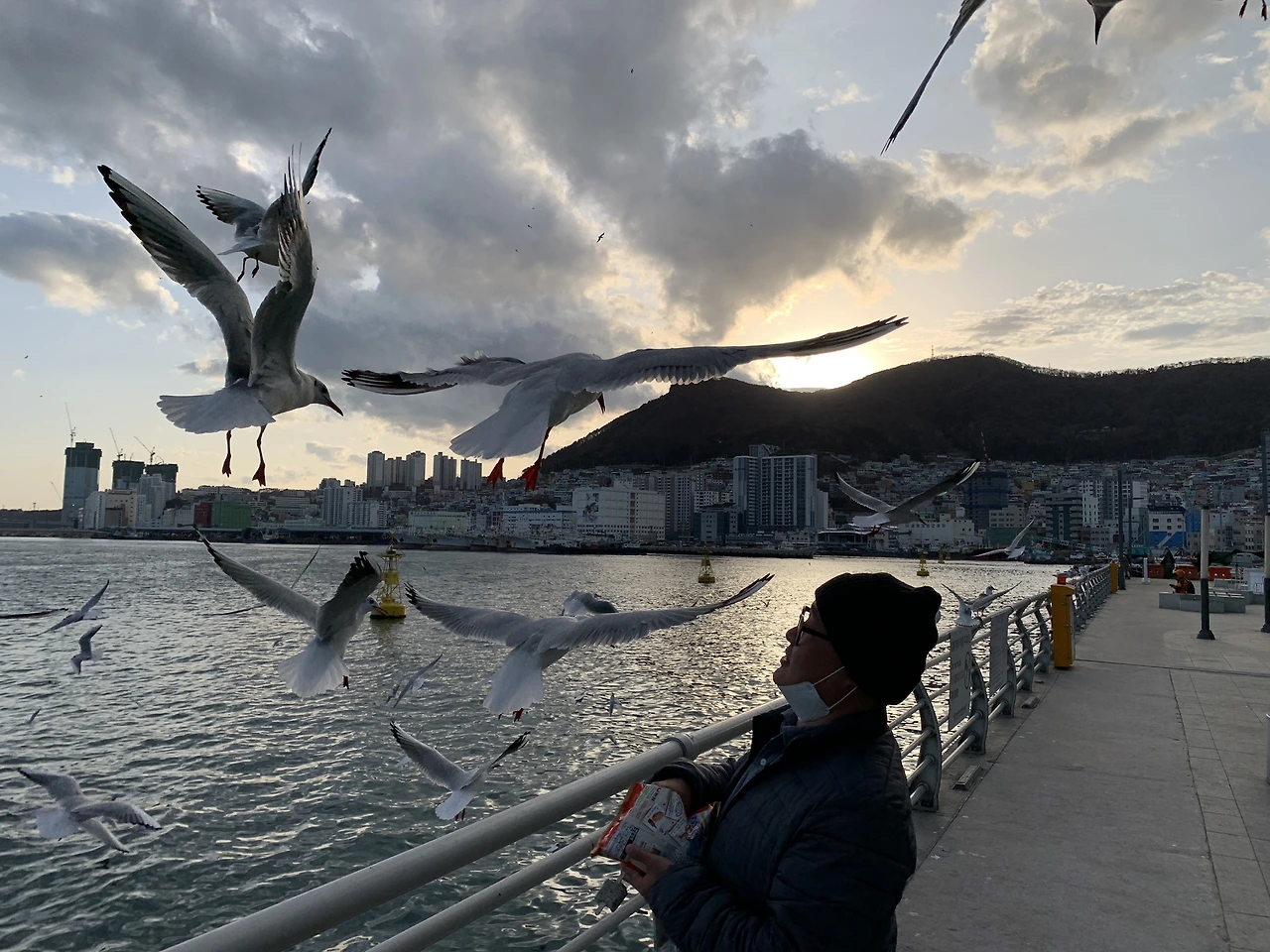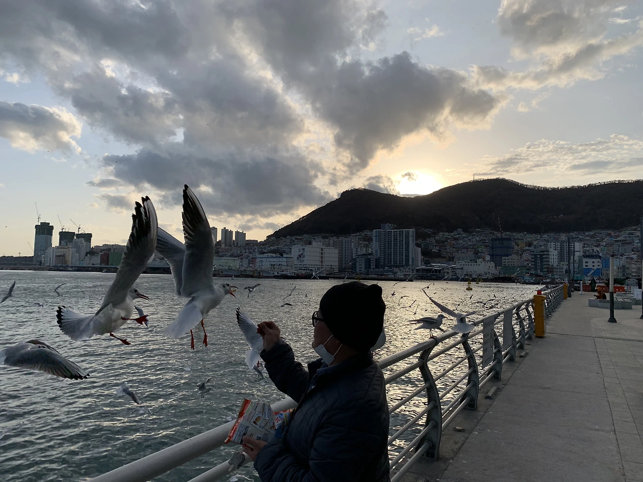 상어를 먹은 이유 때문인지 그는 갈매기에 새우과자를 준다. 어쩌면 그는 하루하루 버티기 힘든 일상에 갈매기 너희라도 잘 먹고 마음껏 하늘을 날으라고 과자를 주고 있는지 모른다. 고소한 새우 과자의 향에 갈매기들이 힘찬 날갯짓을 하며 몰려든다.