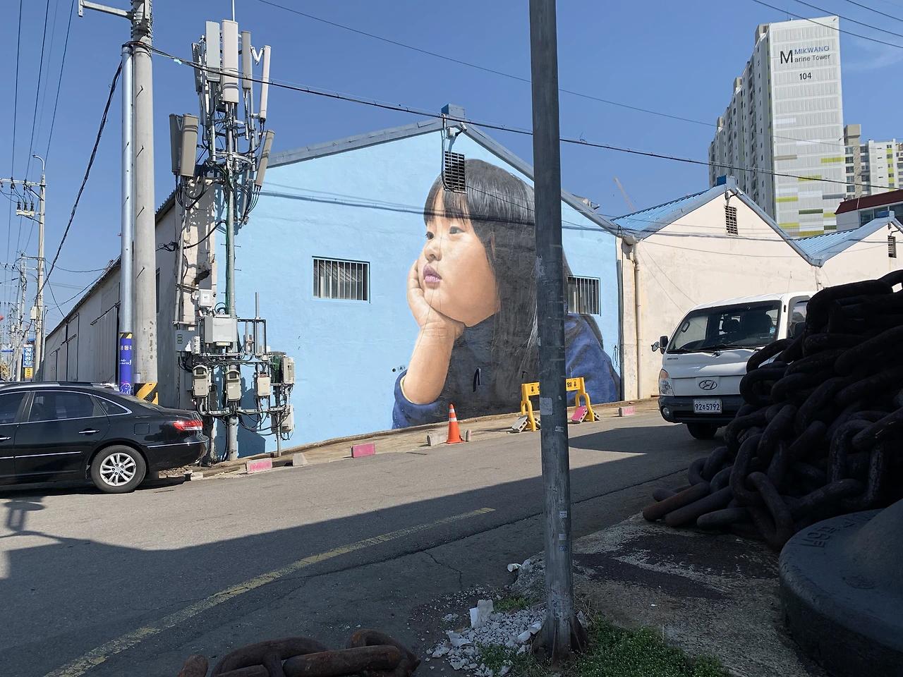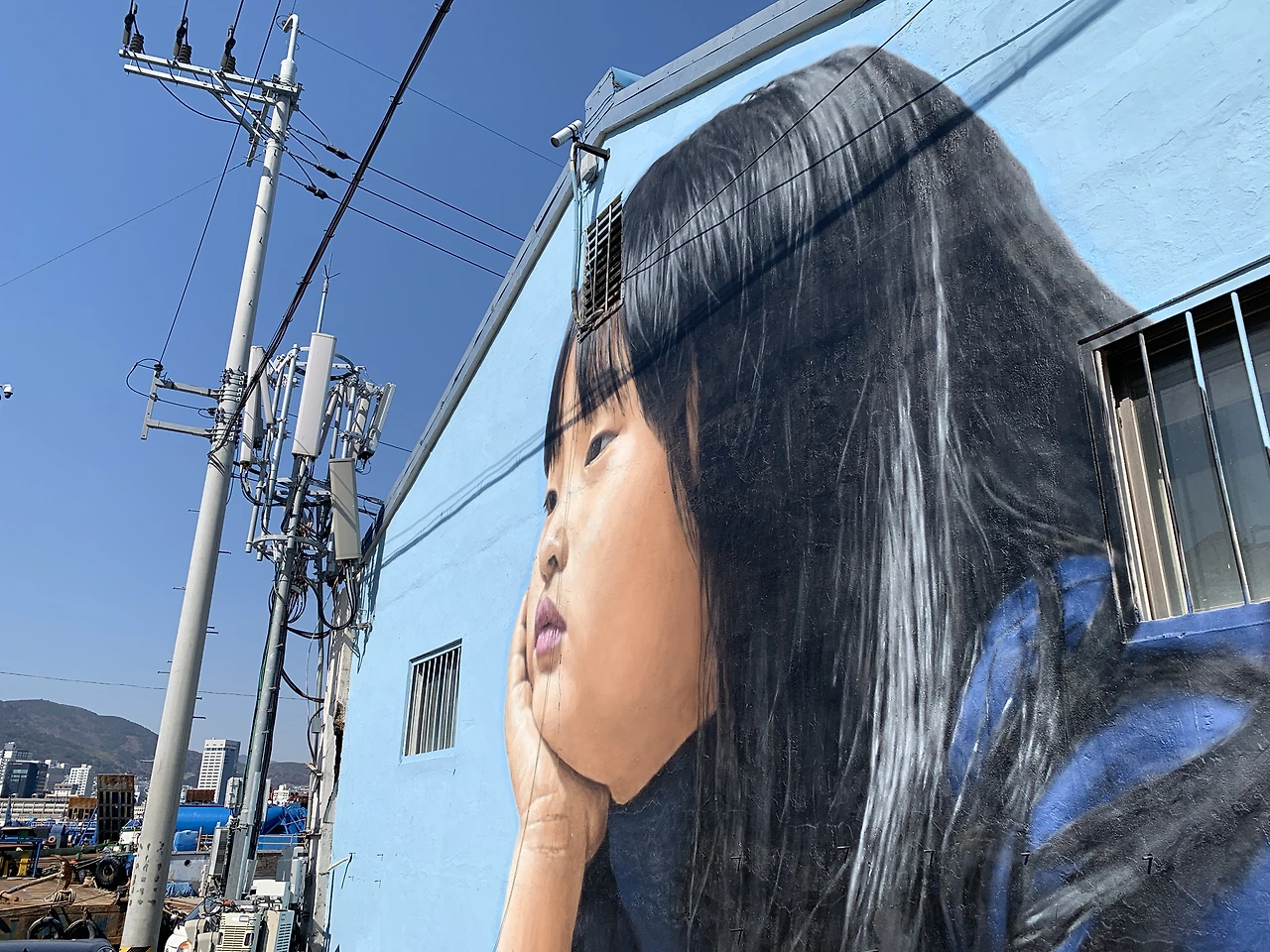항구를 지나 집으로 가는 길에 폐공장을 커다란 아트 작업실로 바꾼 건물이 나타난다. 건물벽에는 어린 소녀의 얼굴이 크게 그려져 있다.