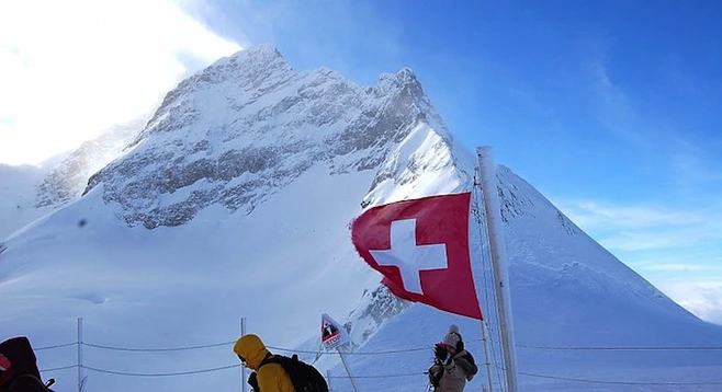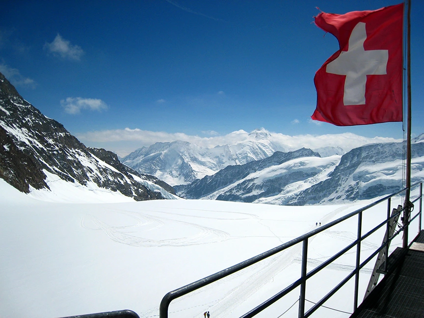 입구를 나와 만년설 위로 하얗게 펼쳐진 설원을 지나면 빨간 스위스 깃발이 펄럭인다. 이곳에 줄을 서서 기다렸다가 한컷의 사진을 찍으면 웅장한 융프라우를 정복한 나를 영원히 기억할 증명서가 완성된다.