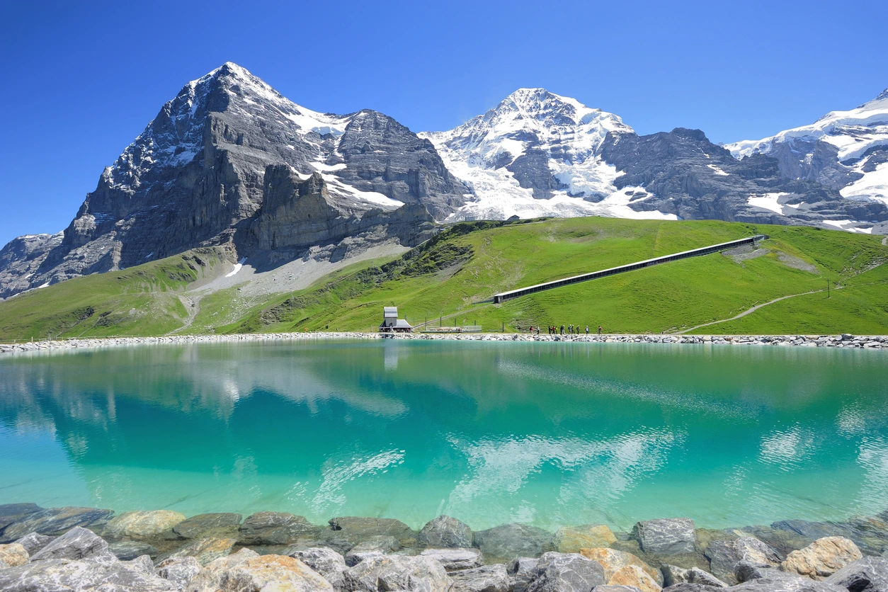 열차에서 내린 사람들은 눈이 쌓인 얼음산을 배경으로 사진 찍기에 바쁘다. 클라이네 샤이데거는 알프스 트레킹을 위한 사람들의 성지로 만년설인 융프라우를 머리에 이고 푸른 산을 아래에 둔 채 눈부신 풍경을 자랑한다.