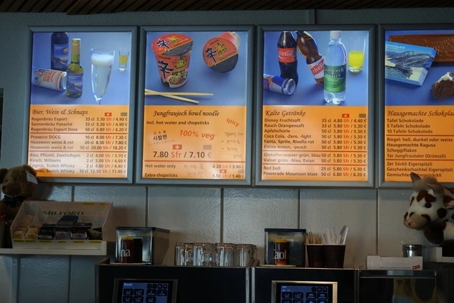 어지러운 기운을 느끼며 융프라우 역을 나서면 카페가 나온다. 이곳에서 티켓에 포함되어 있는 쿠폰으로 컵라면을 받을 수 있다. 3시간 넘게 기차 안에서의 추위와 허기진 배를 컵라면으로 달래니 그 맛은 꿀맛이다.