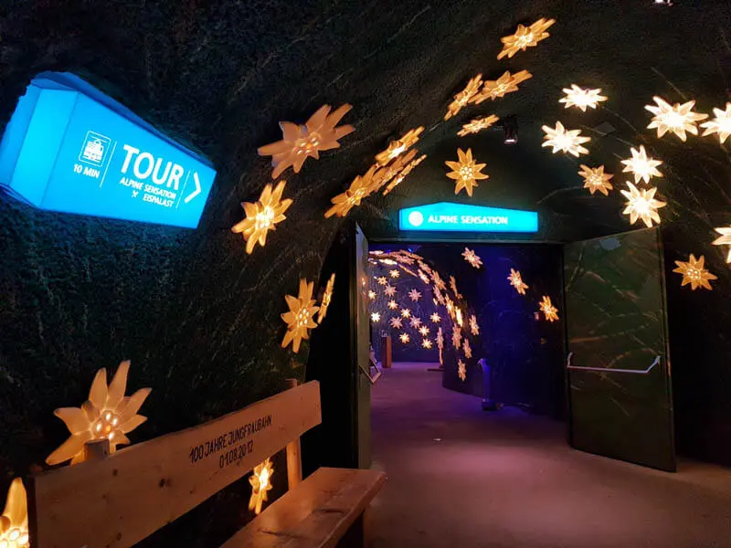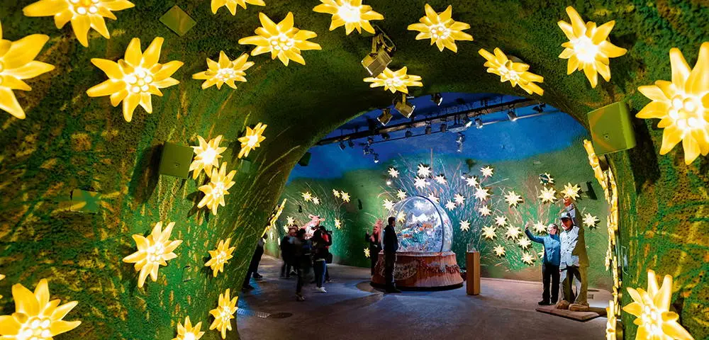 전망대를 내려와 에델바이스 조명으로 신비로운 알프스 산간 마을을 보여주는 대형 스노볼을 지나면 융프라우의 하이라이트인 스노 펀이 나온다.
