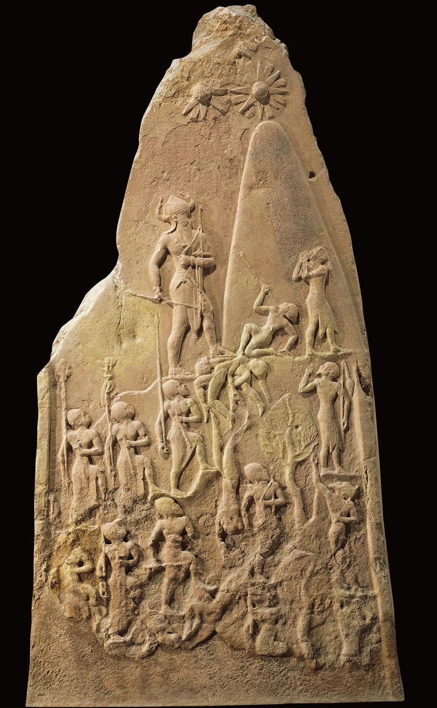 기원전 2270년경 이란 국경 지대에 있는 자그로스 산지에 사는 루르비인과의 싸움에 이겼음을 기념한 이 석비는 그의 무훈을 간결하면서도 웅변적으로 말해주고 있다.