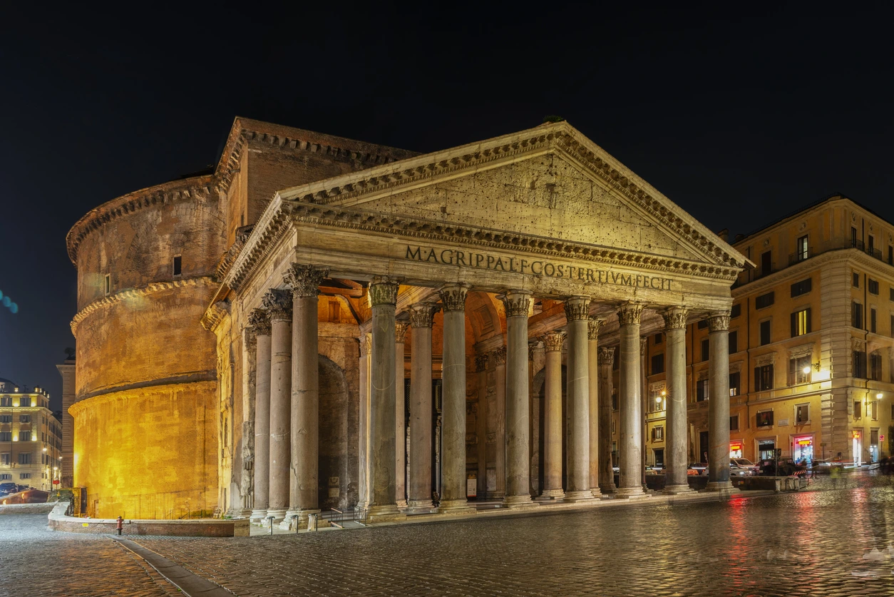 기원전 27년 옥타비아누스 황제의 사위 마르쿠스 아그리파가 건축한 판테온은 로마의 모든 신에게 바치는 만신전으로 그 장대함과 경이로움에 보는 사람마다 감탄을 자아내었다. 609년에 일찌감치 성당으로 변경된 판테온은 다른 고대 로마 건축물처럼 완전히 파괴되는 사태를 피할 수 있었지만 돔에 금박을 입혔던 청동 타일은 콘스탄티노플로 보내졌으며 현관을 장식하던 청동 장식물도 성 베드로 성당의 주 제단을 만들기 위해 뜯겨 나갔다. 그럼에도 불구하고 판테온은 고대 로마 시대의 모습을 그대로 간직한 유일한 건축물이다.