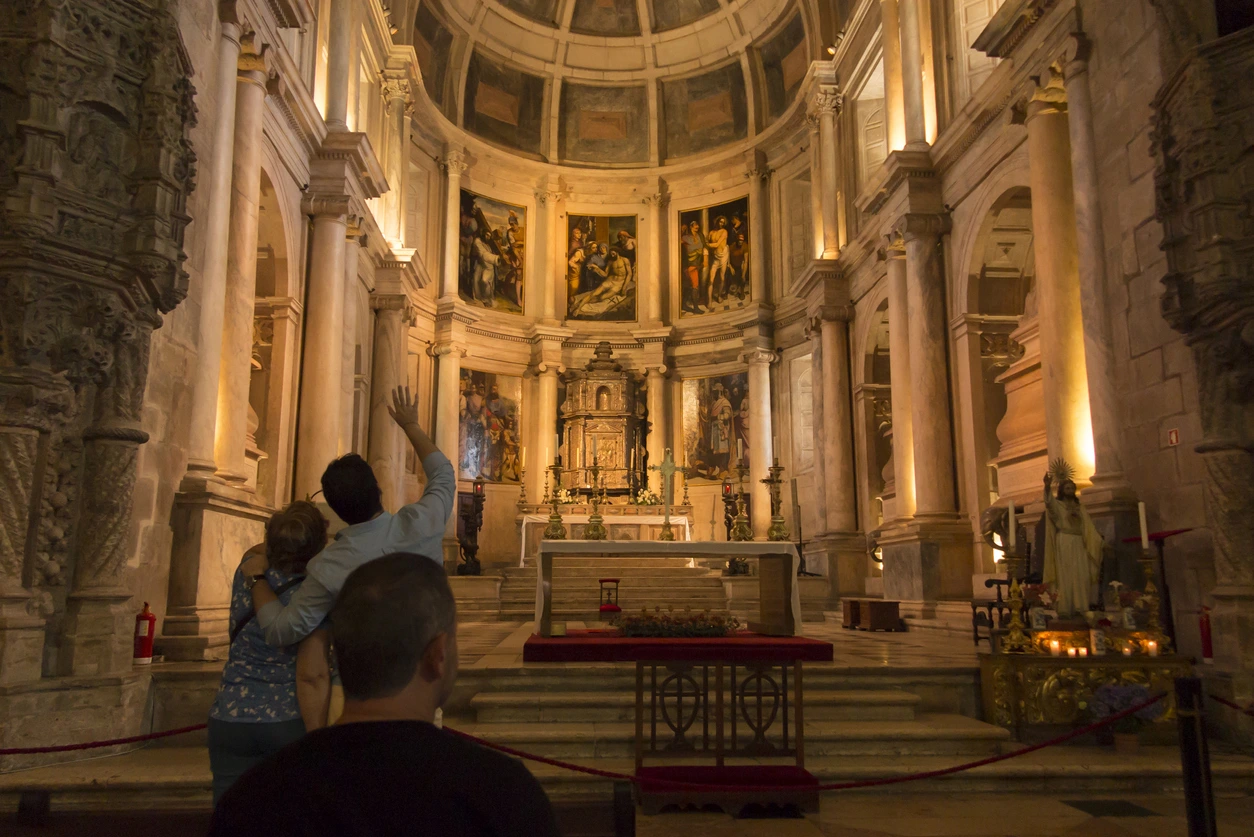 수도원과 연결된 산타마리아 성당에는 유럽에서 인도까지 직항로를 개척한 바스쿠 다 가마와 포르투갈의 대표적인 민족 시인인 카몽이스의 석관을 만날 수 있다. 인도로 떠나기 전 이곳에서 마지막 기도를 올렸던 바스쿠 다 가마의 석관 근처에는 밧줄을 쥐고 있는 손 조각상이 있는데 이를 만지면 순조로운 여행을 할 수 있다는 전설에 따라 많은 여행자들이 줄을 서서 자신의 차례를 기다린다,