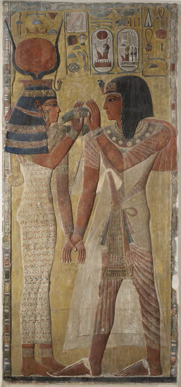 왕가의 계곡의 세티 1세의 무덤에서 가져온 이 벽화는 루브르 박물관의 최고의 보물 중 하나이다. 벽화에는 여신 하토르가 저승의 문 앞에서 세티 1세를 맞이하고 있다.
