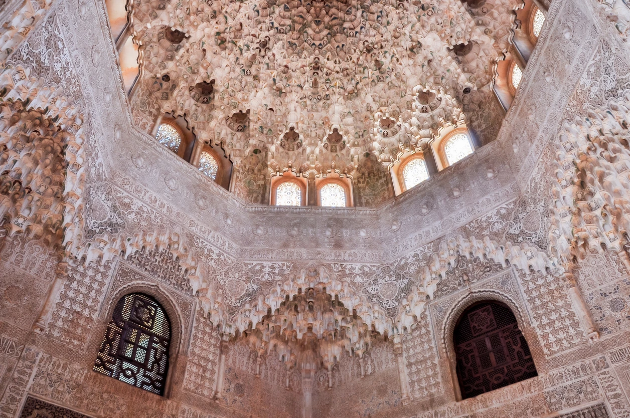 특히 돔 천장은 하루를 지나는 동안 16개의 창문을 통해 들어오는 햇빛이 모카라베 장식들을 비춤에 따라 광활한 우주 속에서 끊임없이 변하는 하늘의 이미지를 보여준다.
