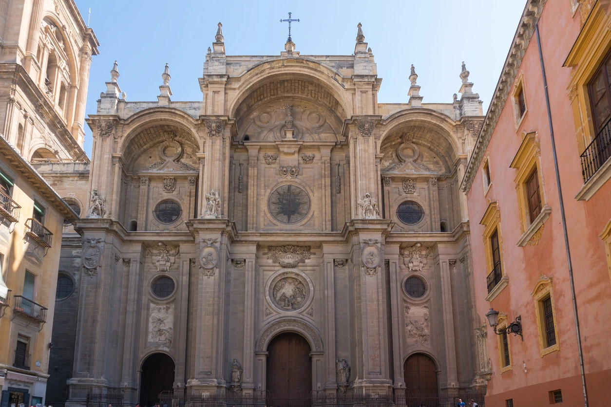 이슬람 사원인 모스크가 있던 자리에 지어진 그라나다 대성당은 1521년에 건립하기 시작하여 18세기에 와서야 완성되었다. 처음에는 고딕 양식으로 지어진 대성당은 돔형 지붕을 비롯하여 넓은 실내공간 등 르네상스 양식으로 마무리되었으며 말발굽 모양의 아치에서 이슬람 영향을 받은 무데하르 양식도 볼 수 있다.