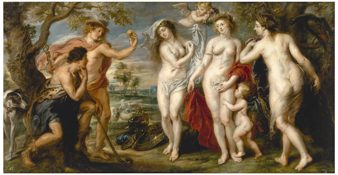 바다의 여신 테티스의 결혼식에 초대받지 못한 불화의 여신 에리스는 화가 나서 연회장에 <가장 아름다운 여신에게>라고 쓴 황금 사과를 남기고 사라진다. 올림포스 최고의 여신들은 이 사과를 서로 갖겠다며 싸운다. 제우스는 사과의 주인을 결정하는 권한을 인간의 세계에서 가장 잘 생긴 파리스에게 맡겼다.