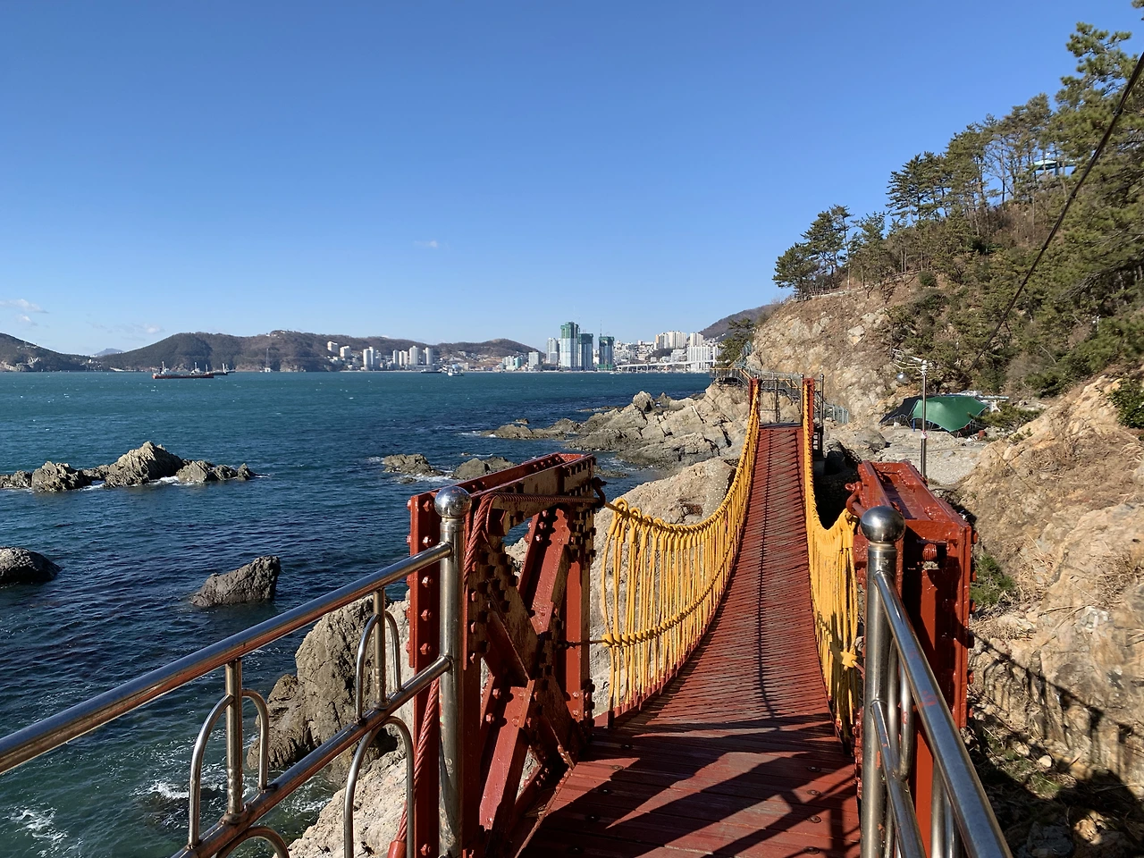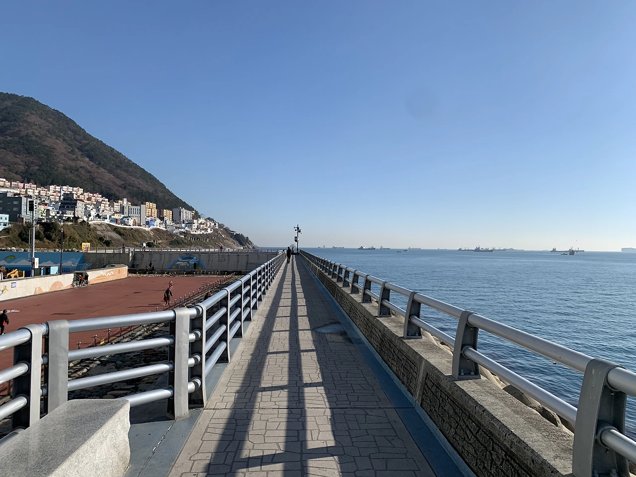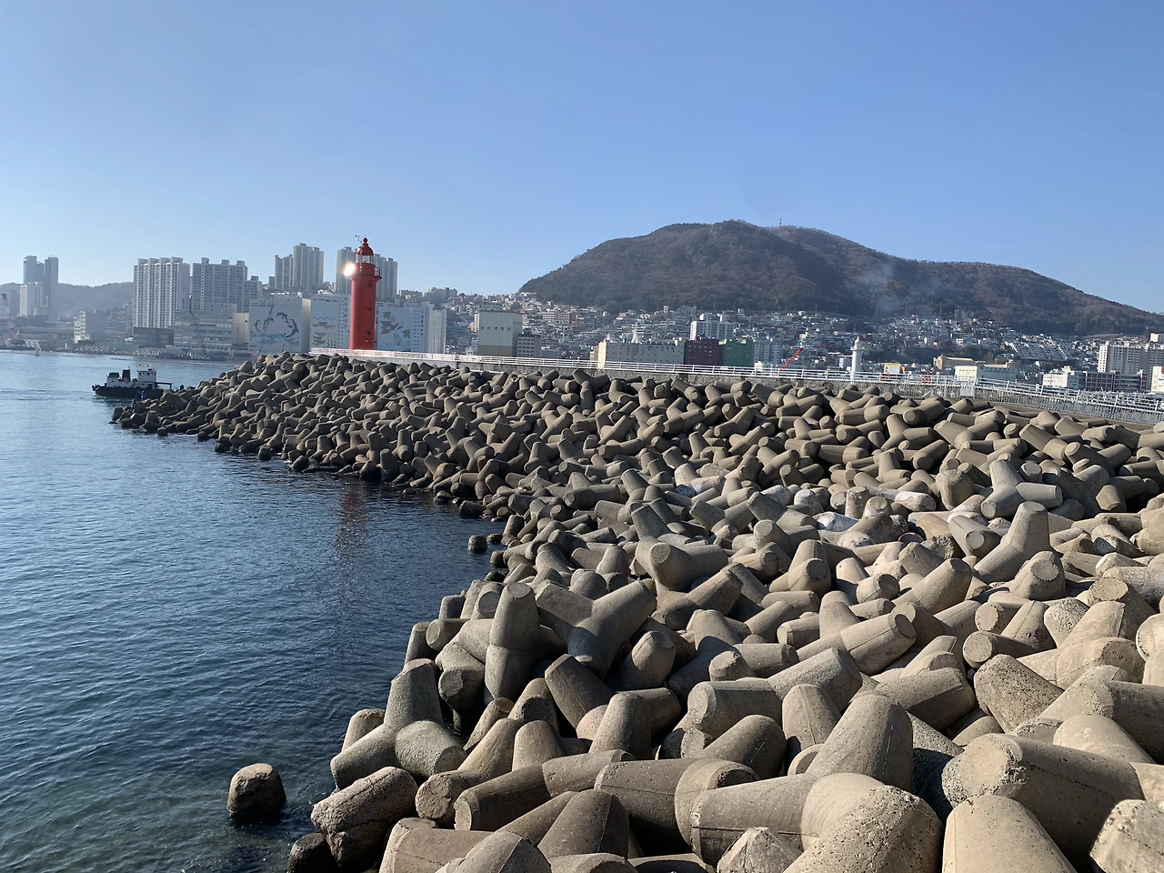 옛날 집이 있던 골목길을 나와 절영로 산책길을 따라 끝까지 걸어가면 빨간 등대와 테트라포드가 나온다. 이전에 없었던 방파제 위의 새로 생긴 길이 쭉 뻗어 있어 현대적인 아름다움을 선사한다.