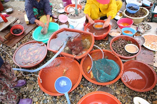 제주에서 온 해녀들이 직접 잡은 싱싱한 소라와 멍게 그리고 문어 등을 펼쳐 놓고 손님들을 유혹하는 해녀촌은 언제나 싱그럽다.