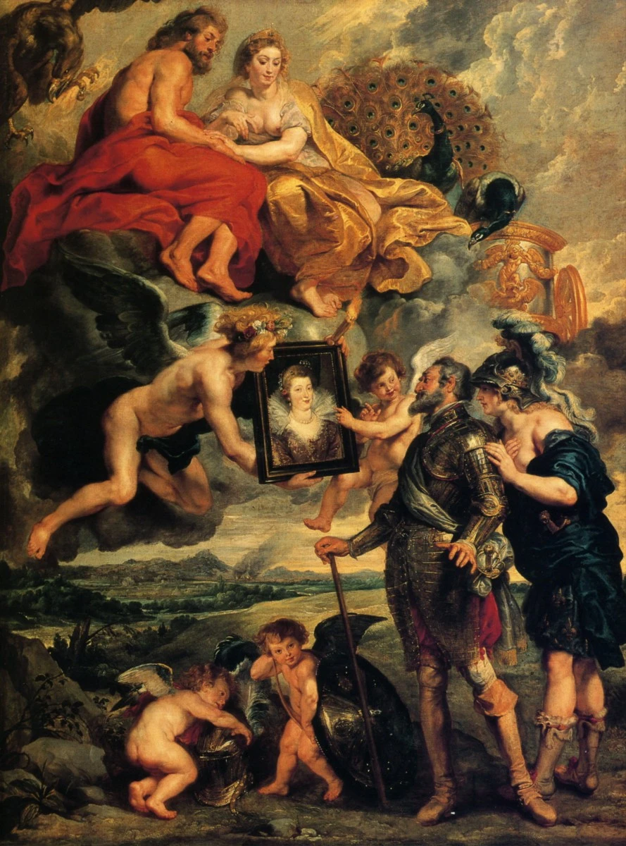 루벤스 특유의 화려한 색과 웅장한 스케일로 그려진 <마리의 일생>운 그녀가 마치 신과 같이 살고자 했음을 보여준다.