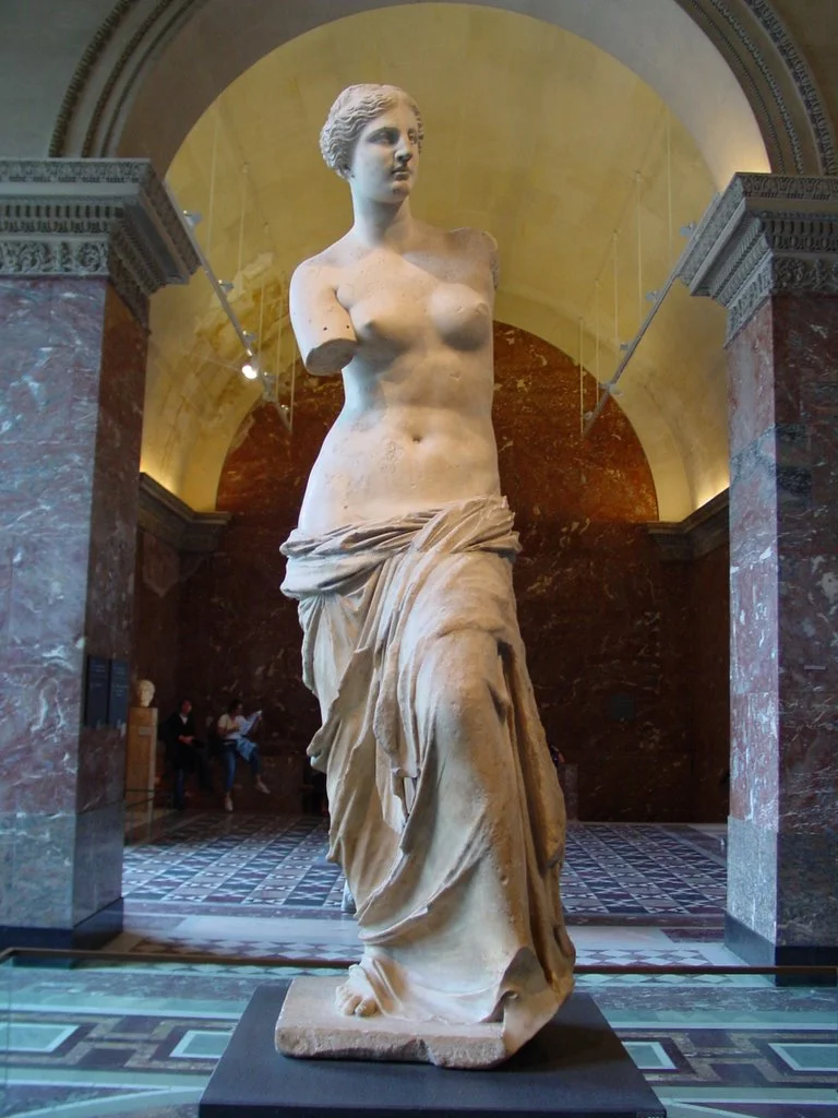 서양문명의 시작을 알리는 고대 그리스에서 기원전 2세기에 제작된 비너스는 금방이라도 옷이 흘러내릴 듯한 육감적인 몸매와 차갑고 이성적인 얼굴의 조화로 인간이 가질 수 있는 가장 이상적인 아름다움을 보여준다.