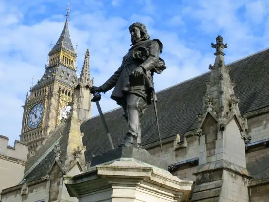 전망대에서 다시 다리를 건너 국회의사당 정문으로 가면 의사당 정원에 올리버 크롬웰 동상이 있다. 동상은 길 건너 세인트 마가렛 교회의 뒷문에 있는 찰스 1세의 흉상과 서로 마주 보며 영국 민주주의를 아픈 역사를 보여준다.