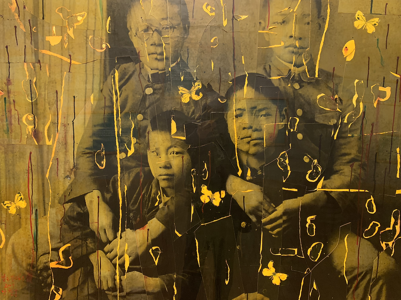 안찬홍의 <봄날은 간다>에서 빛바랜 사진 속의 인물들은 6.25와 독재 시절을 거친 상처 입은 우리들의 자화상이다. 어두운 회색조와 노란색은 그 상처를 더욱 깊게 한다. 그리고 사진이 접히고 꺾인 흉터를 그대로 남겨 우리들이 받은 총상과 애환을 여지없이 보여주고 있다.