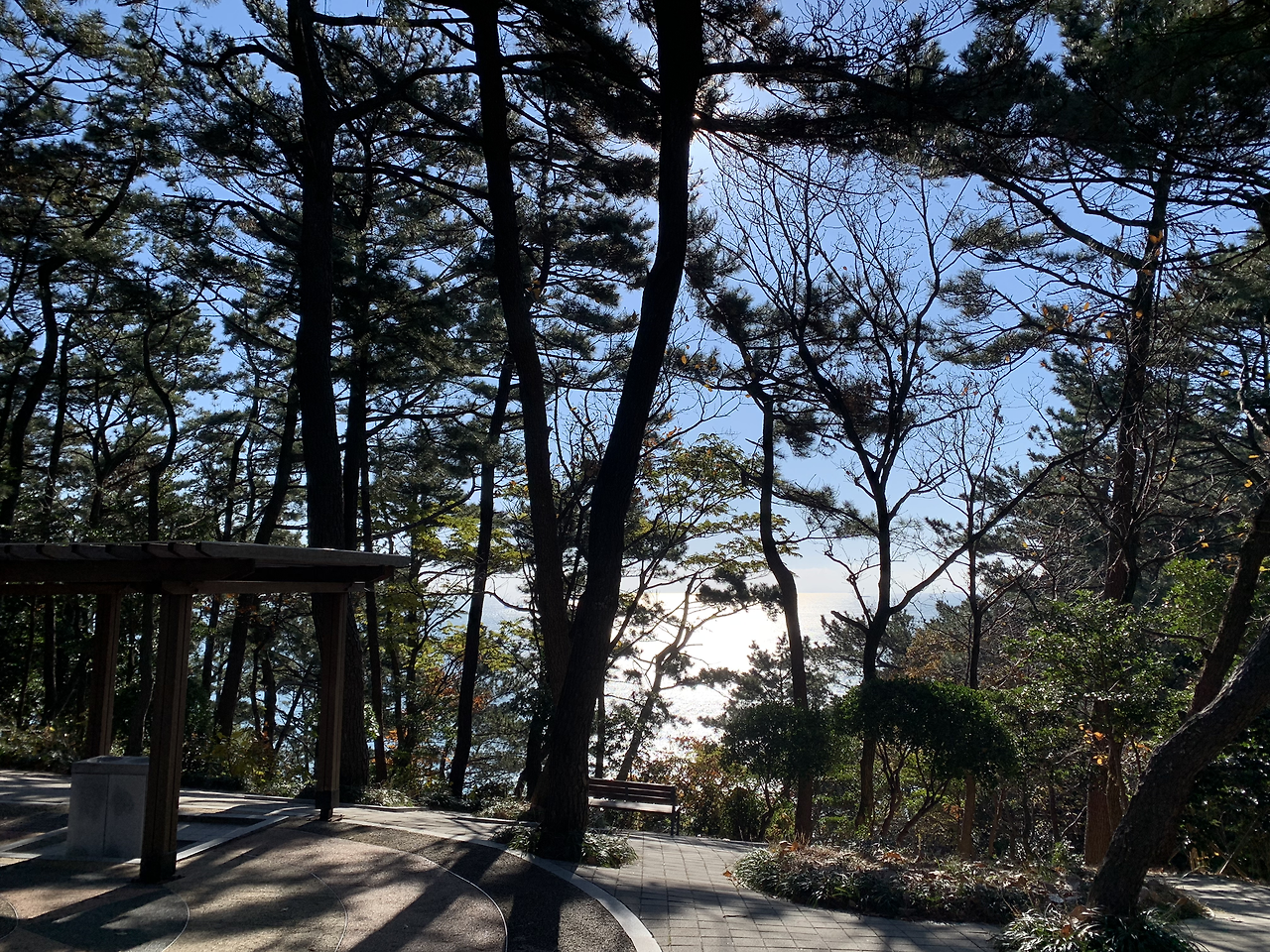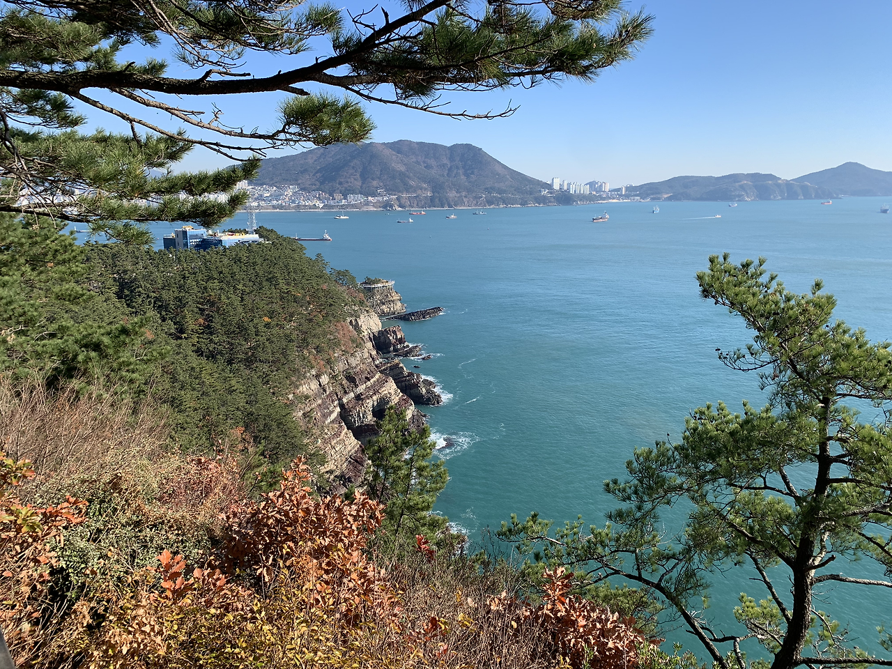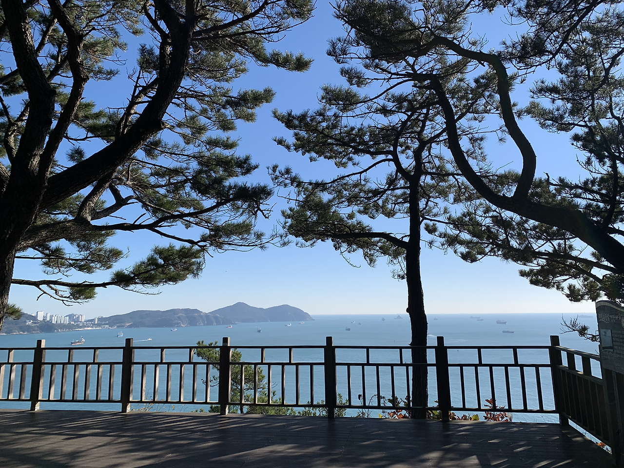 암남공원의 숲 길 끝에 있는 전망대에 서니 숲 사이로 보이는 바다와 그 위로 떠 있는 배들의 모습이 한 폭의 그림처럼 여행자를 감동시킨다.