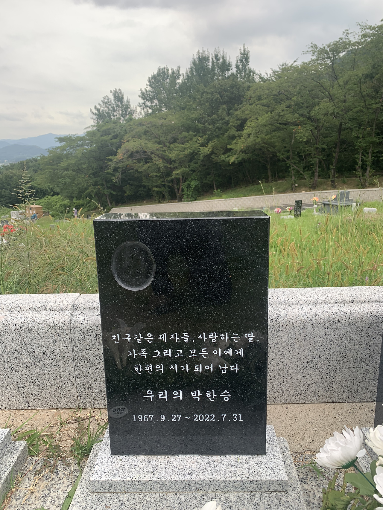 부슬부슬 내리는 비를 맞으며 산길을 올라 하늘 공원에 도착했지만 친구의 무덤은 보이지 않았습니다.