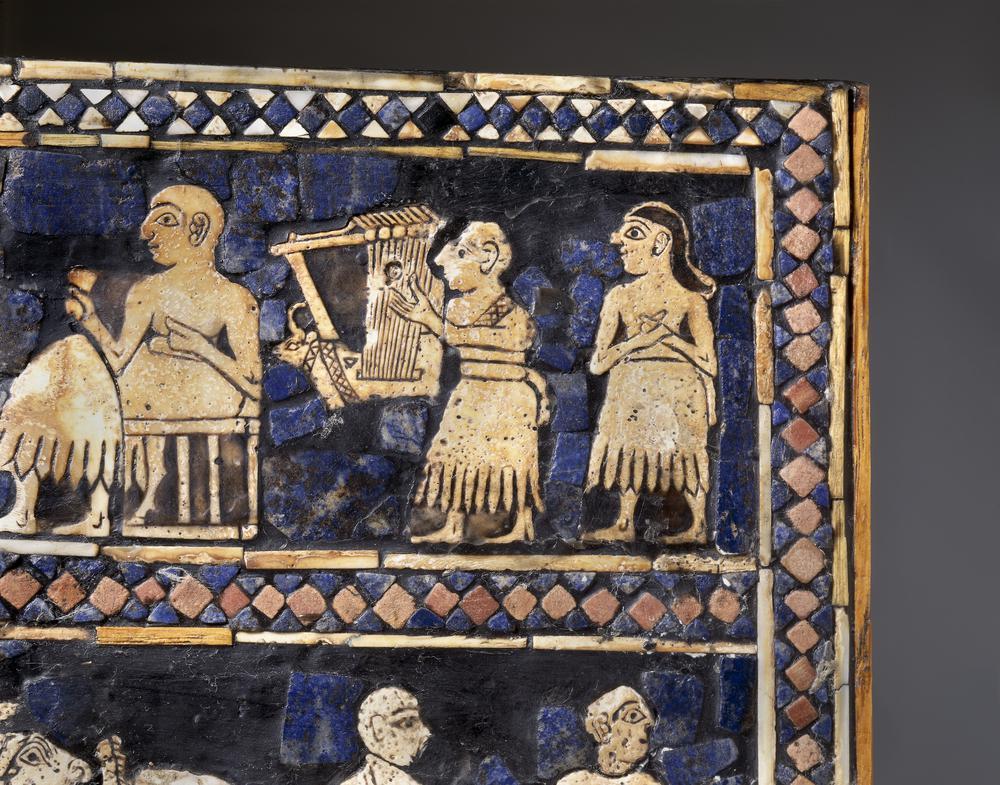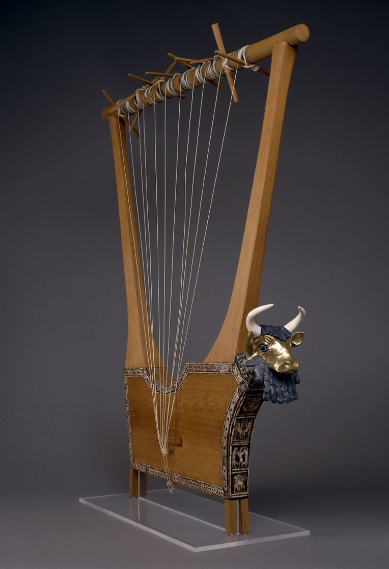 당시 제사를 지내거나 연회를 할 때 사용한 악기에는 풍요를 상징하는 황금 황소의 머리아래로 메소포타미아의 전설적인 왕이자 우르크의 5대 왕이었던 길가메시가 소 두 마리를 휘어잡고 있는 모습이 새겨져 있다.