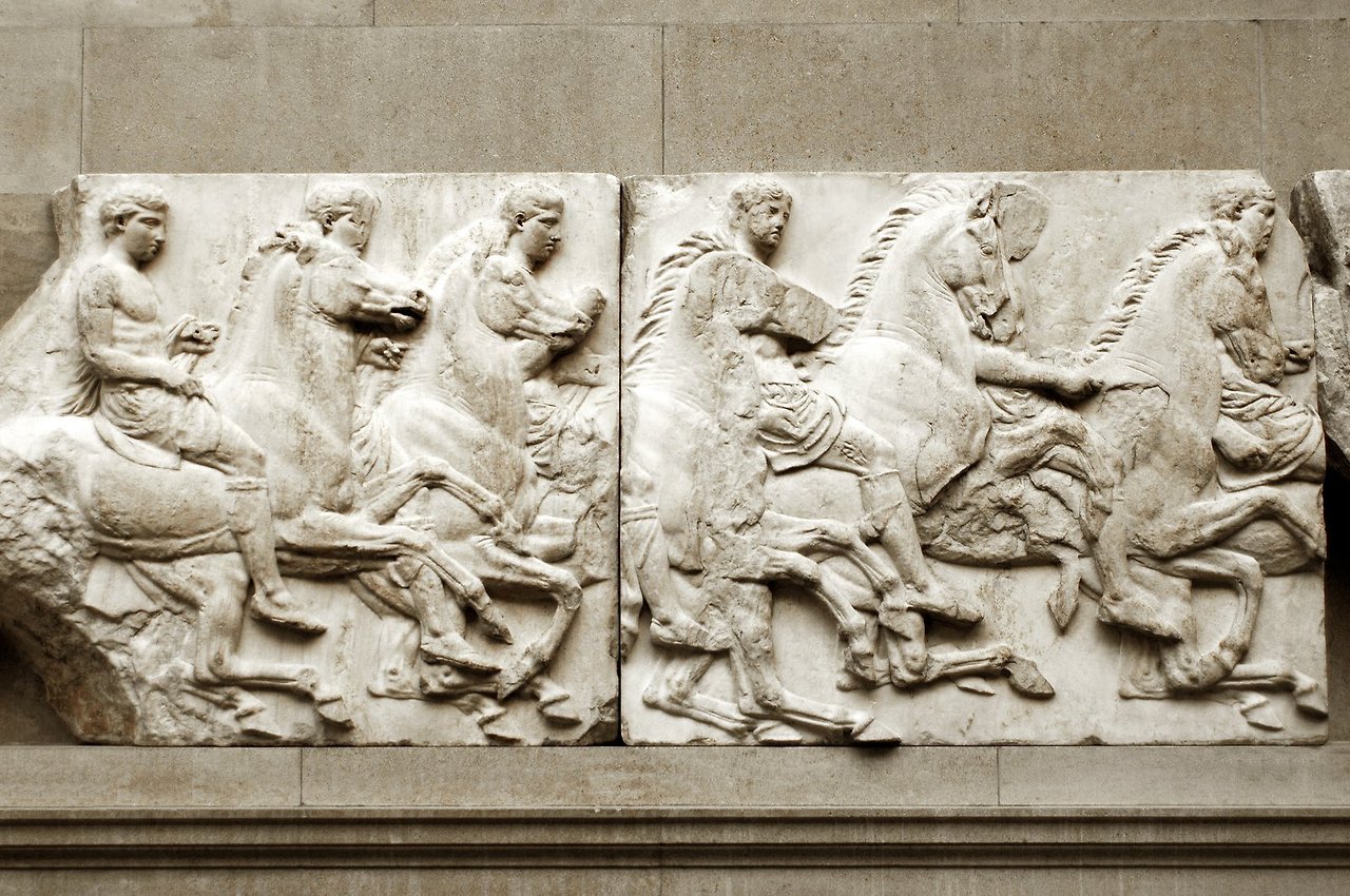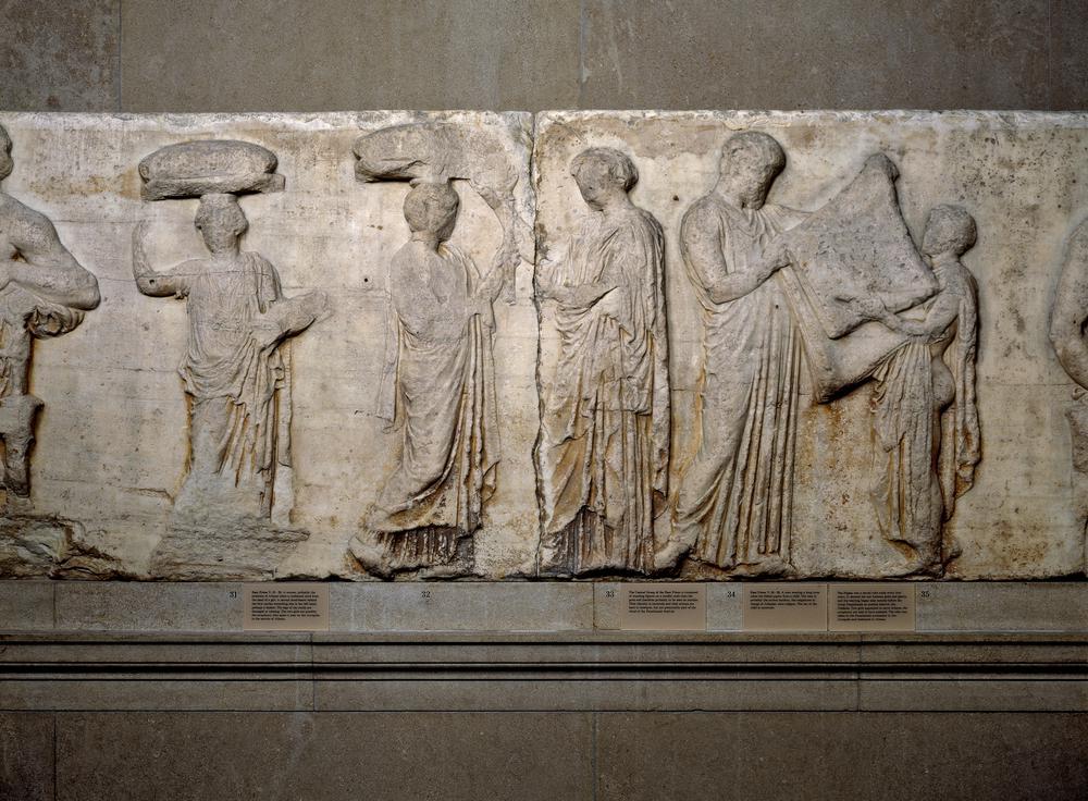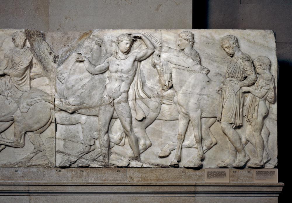 파르테논 전시실의 중앙으로 내려오면 파르테논의 프리즈에 새겨진 조각들을 볼 수 있다.