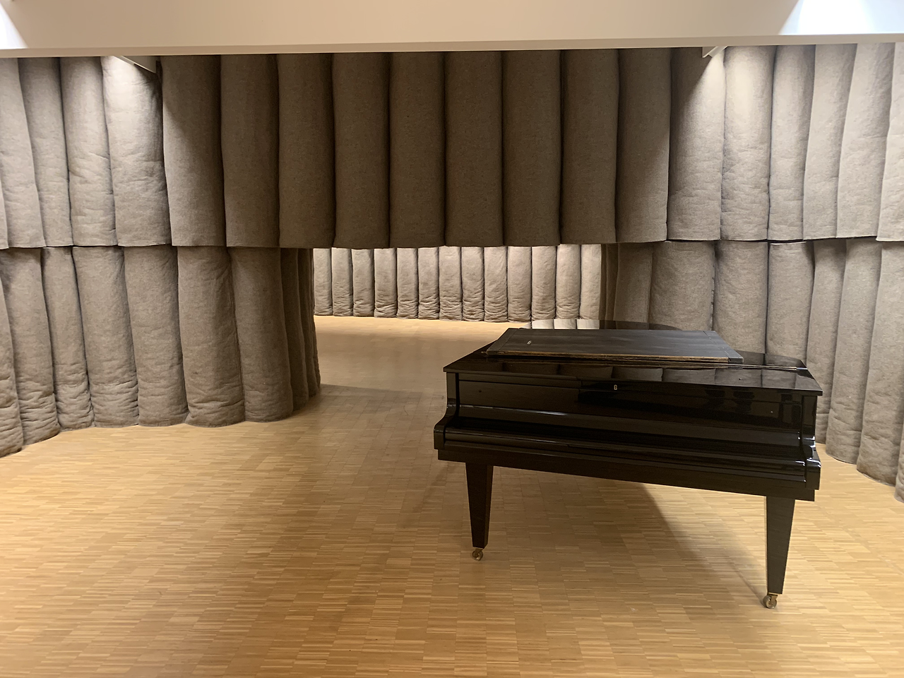 무거운 천으로 덮인 피아노와 벽에서 소리를 낼 수 있지만 현실에서는 소리를 낼 수 없이 사는 우리의 숨 막힌 삶을 보여주는 것 같다.