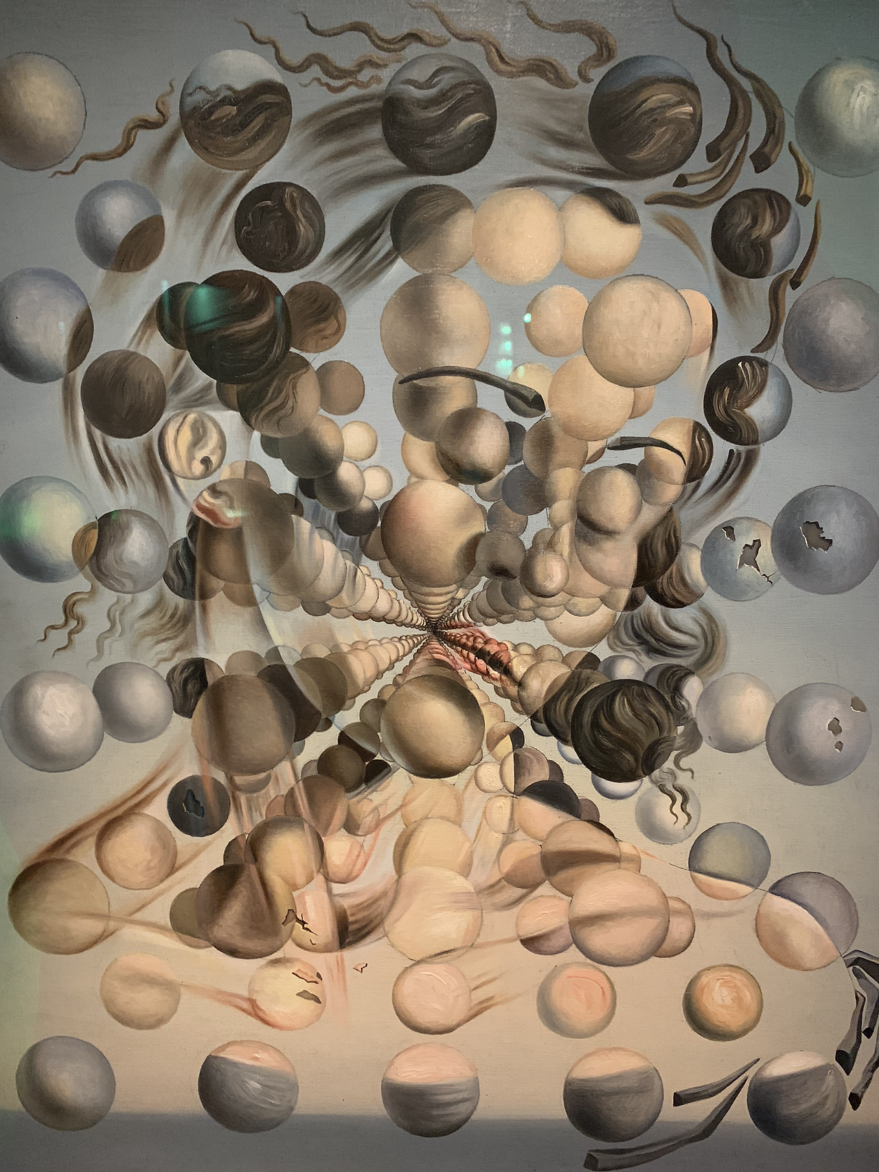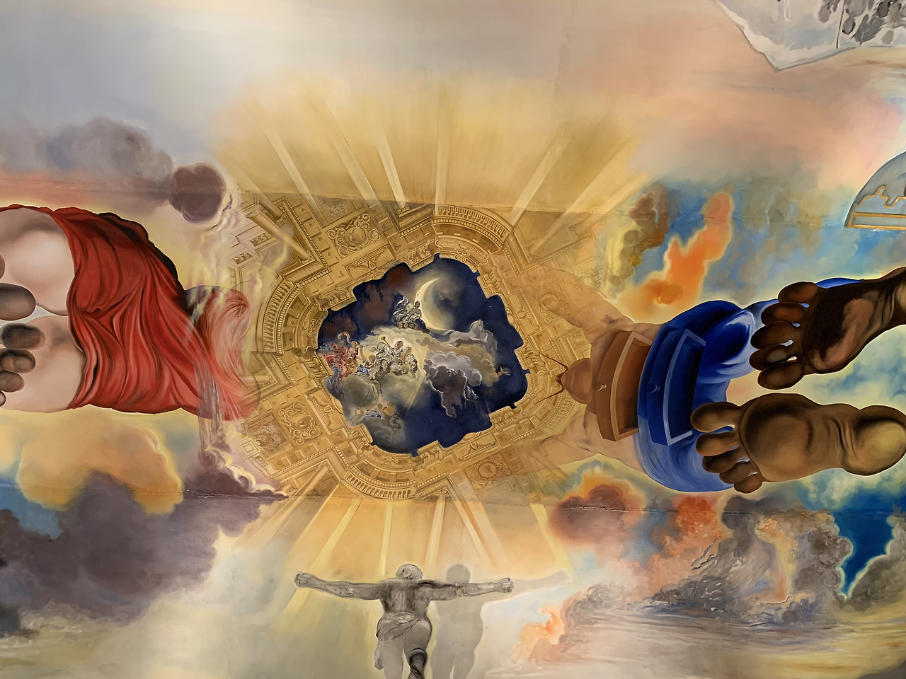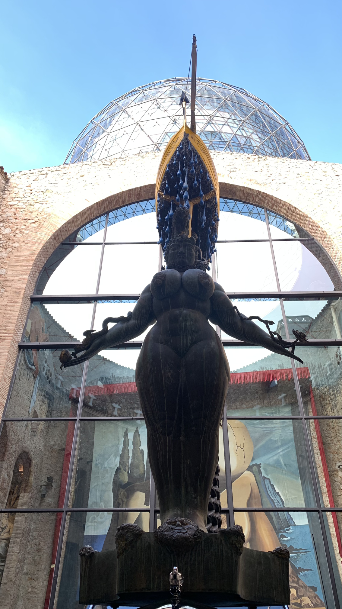 평생 자신으로 살았던 달리의 엽기적인 모습을 보면서 다시 중앙 로비로 나오니 커다란 둥근 유리 지붕이 달리의 거대한 자화상을 비추고 있다.