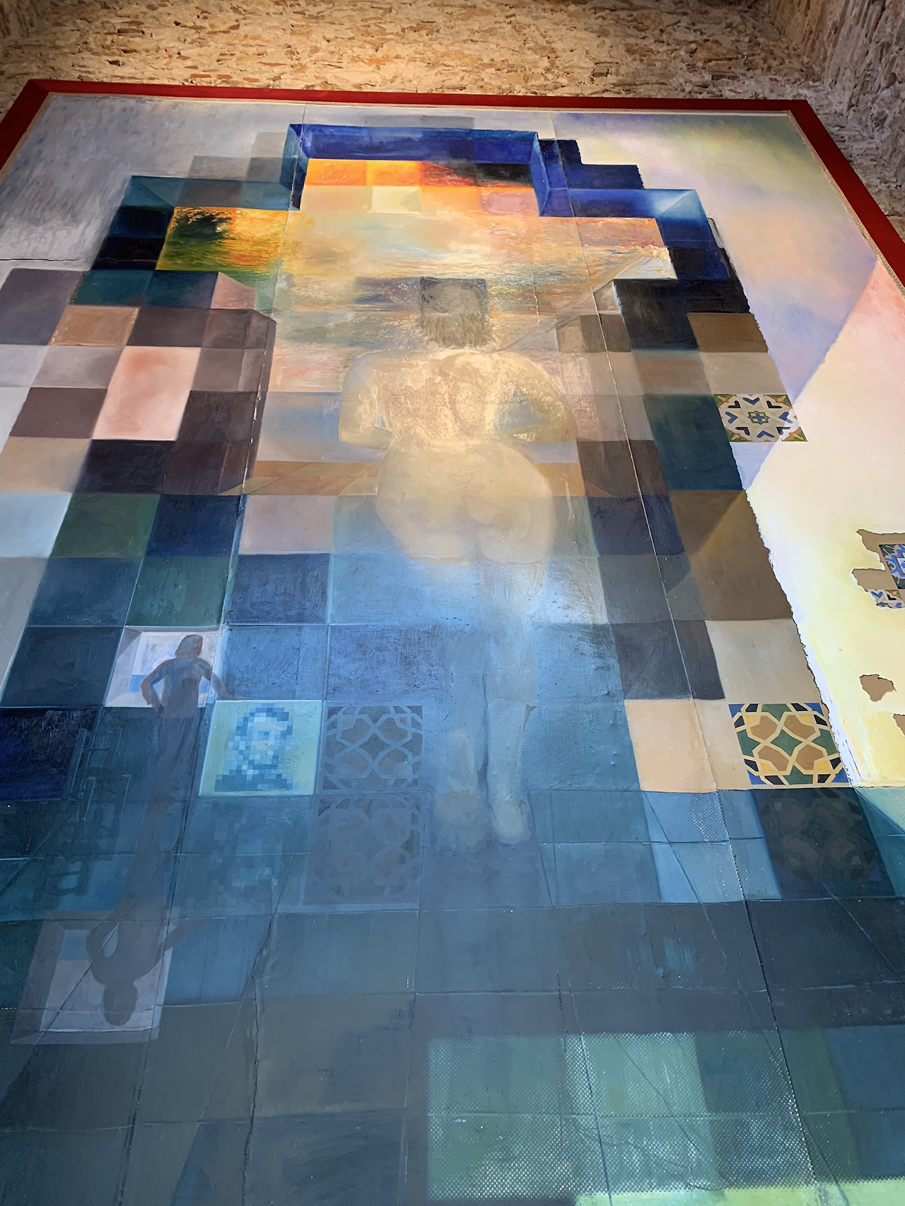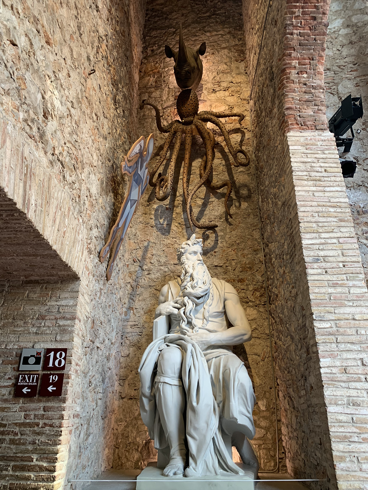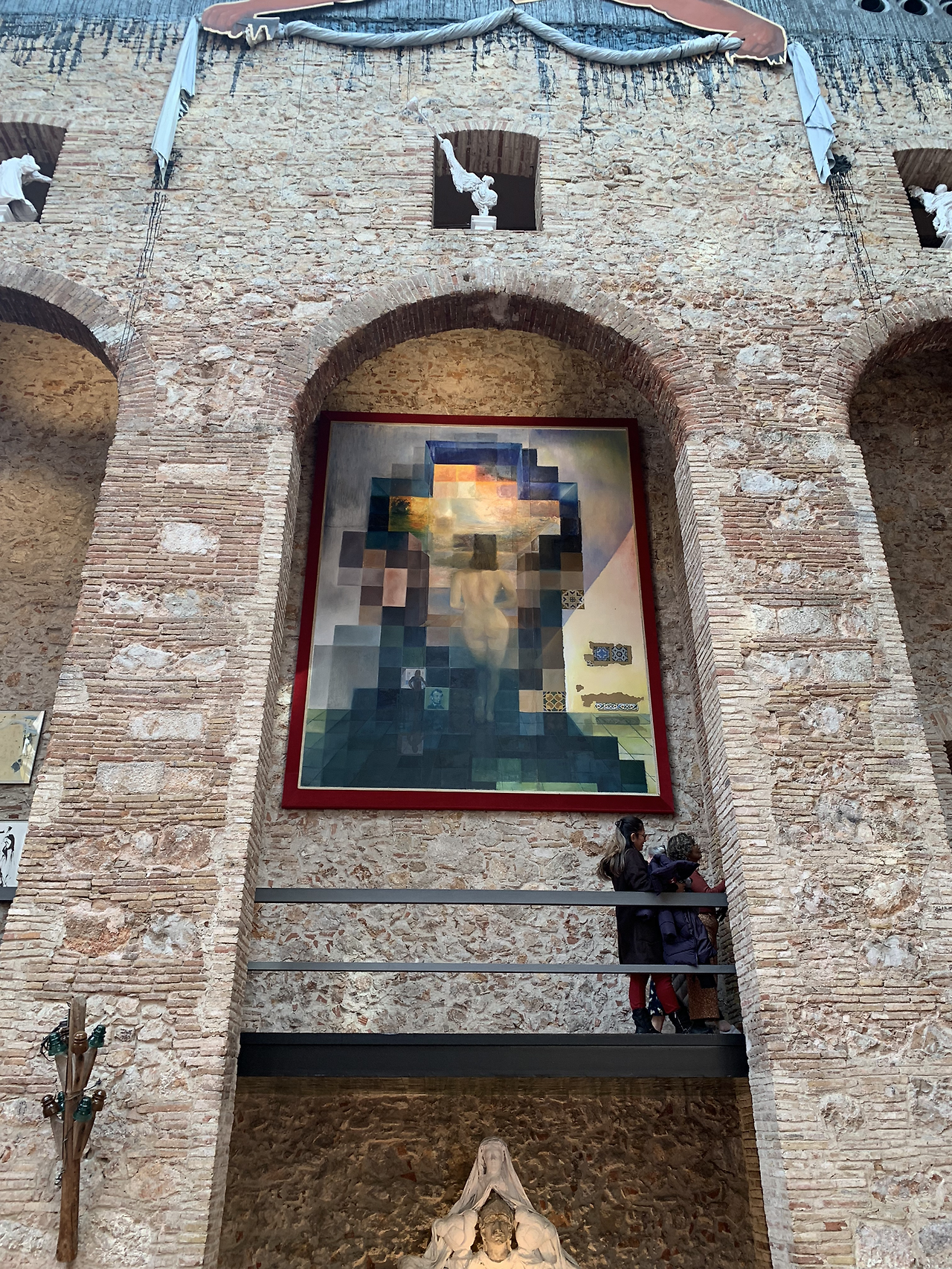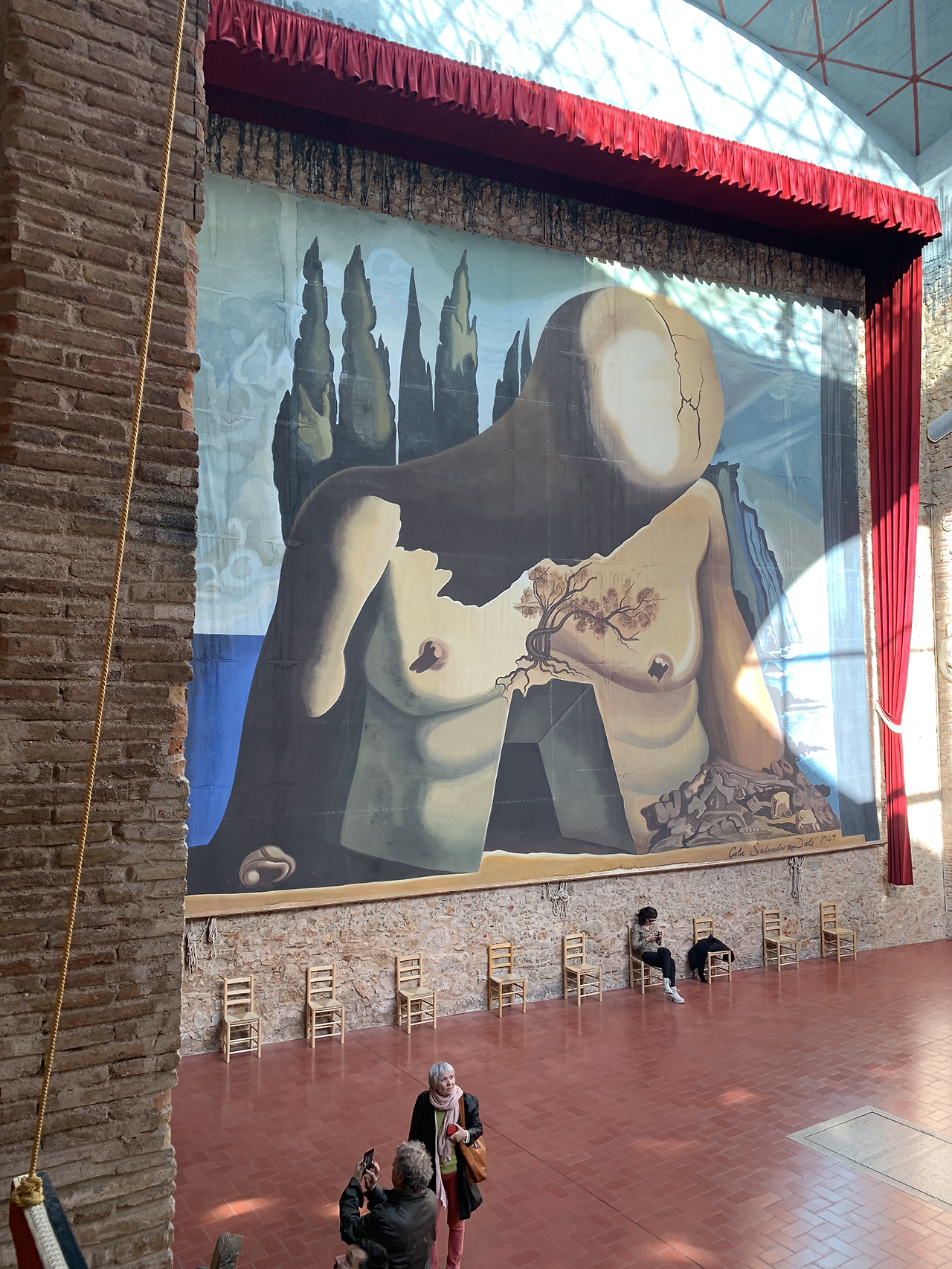 뜰을 지나 극장 안으로 입장하자 정면에 달리의 대형 자화상이 고개를 숙인 채 창밖의 작품으로 향하고 있다.