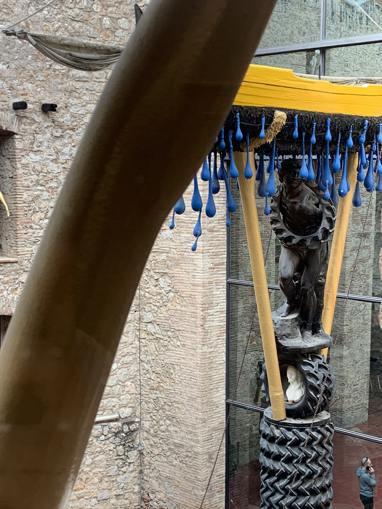 생명과 부활의 상징인 계란과 자주색 벽에 인간의 배설물인 똥을 금색으로 치장한 극장으로 입장하자 달리가 꿈속에서 보았다던 장면이 안뜰을 가득 메우고 있다.