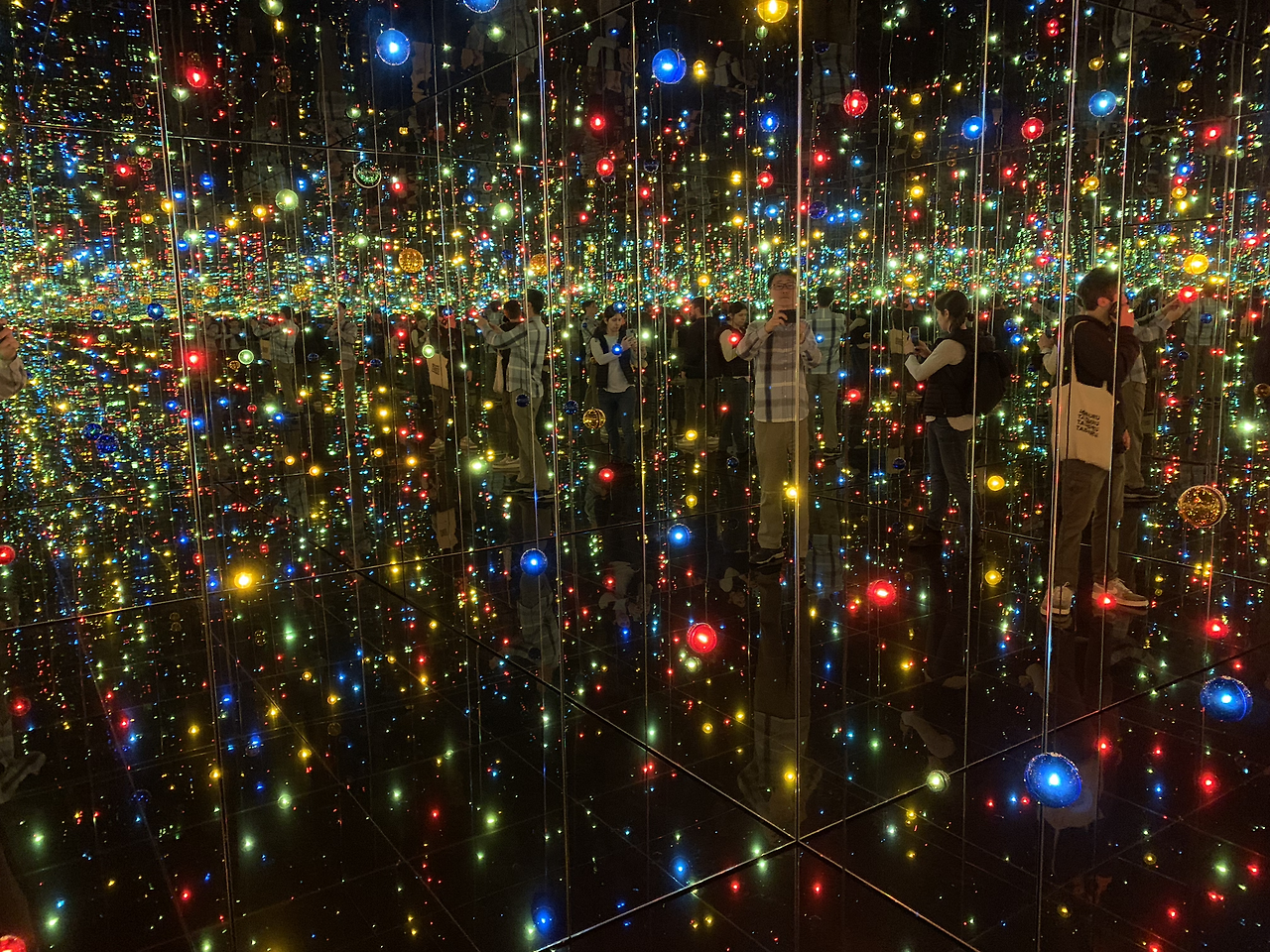파란 마음을 가지고 다음 전시실로 가니 직원 한분이 입구에 기다리라고 한다. 잠시 후 직원의 안내에 따라 입장하니 무수한 별과 빛으로 무한이 뻗어 가는 세상이 펼쳐진다.