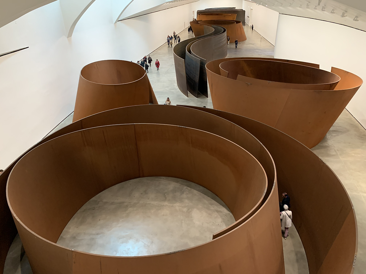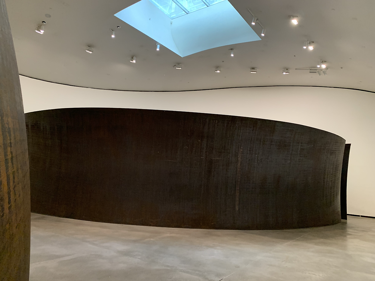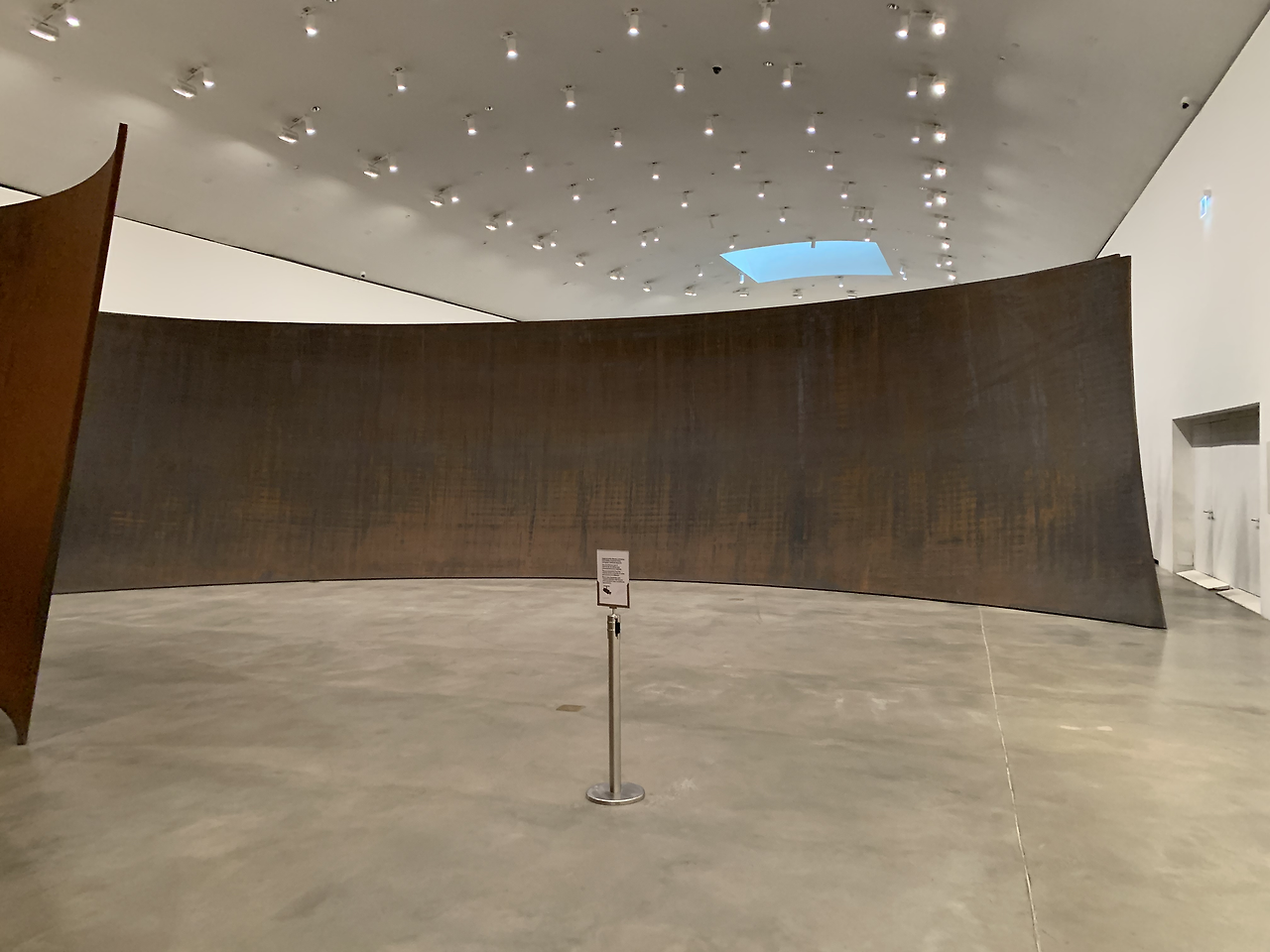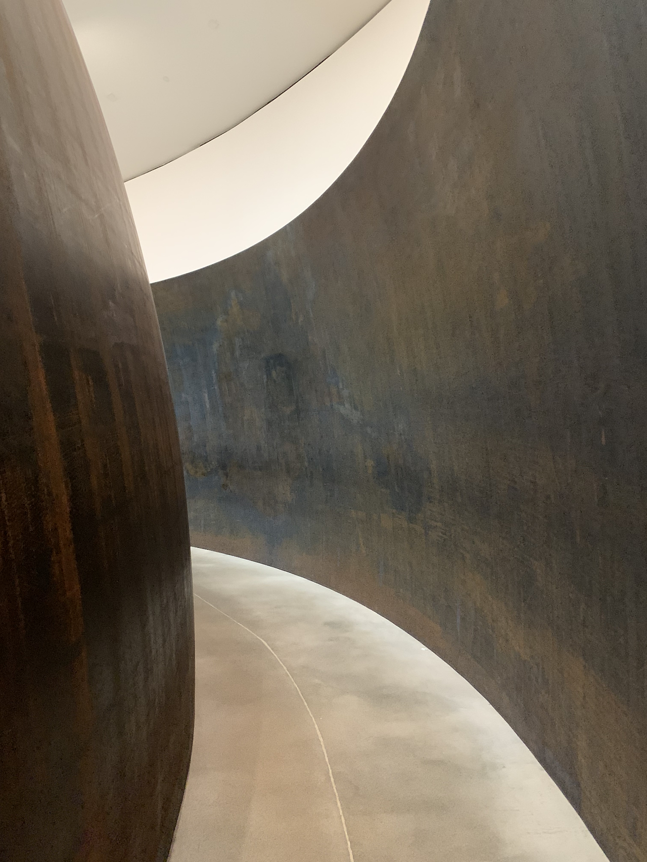 코발트 빛 파란색에 푹 빠져 1층으로 내려오려는데 복도 아래로 리처드 세라의 작품이 한눈에 펼쳐진다.