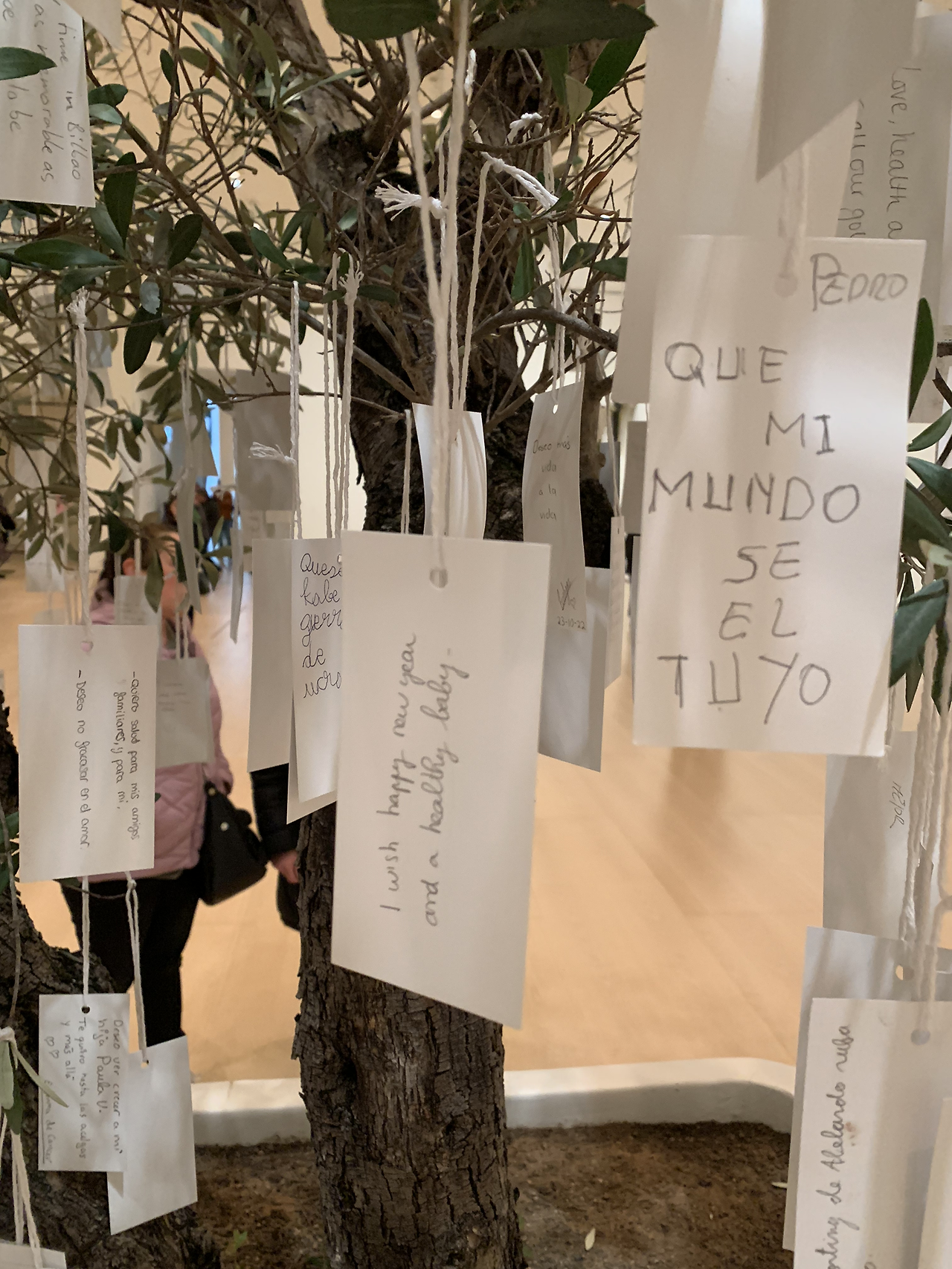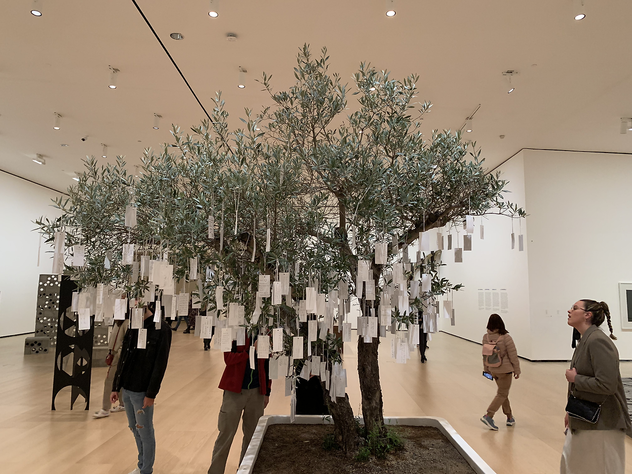 다음으로 만나는 작품이 행복나무이다. 진짜 올리브 나무에 우리가 희망하는 소원들이 빼곡히 걸려있다.