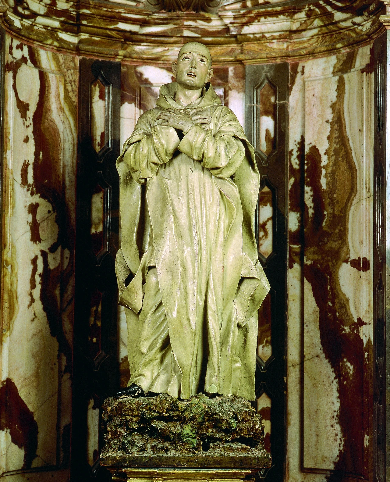 성 브루노 조각상의 안에는 아무것도 남아 있지 않다.