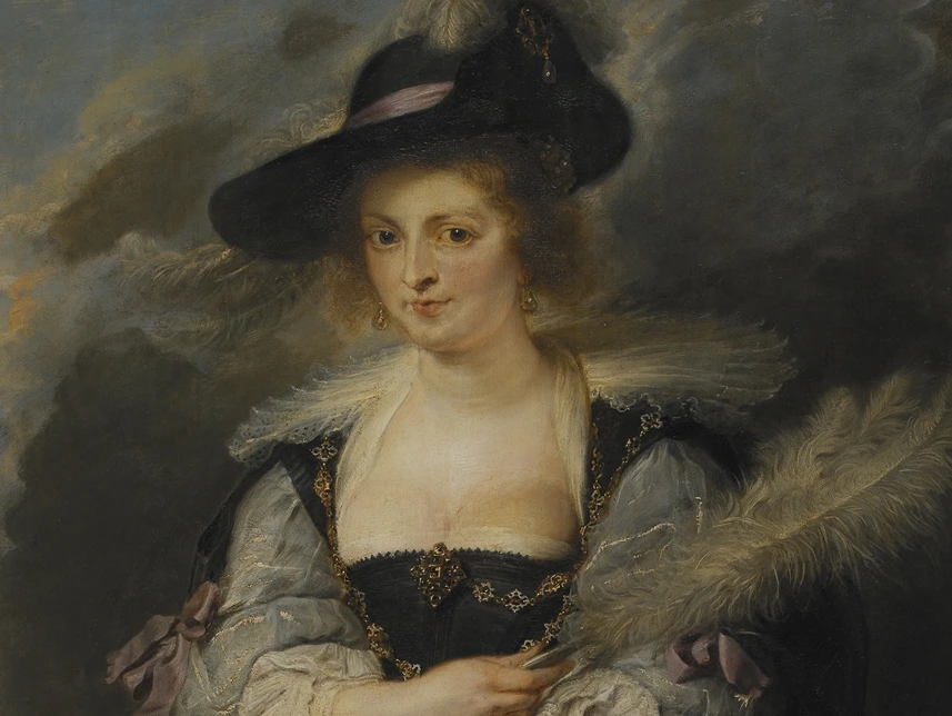 루벤스는 타조 깃털이 달린 챙이 넓은 모자를 쓰고 있는 헬레나 푸르망이 입고 있는 블랙 새틴 슈트의 질감과 부드러우면서 대담한 살의 우아함을 과시하며 그의 넘치는 사랑을 표현하고 있다.