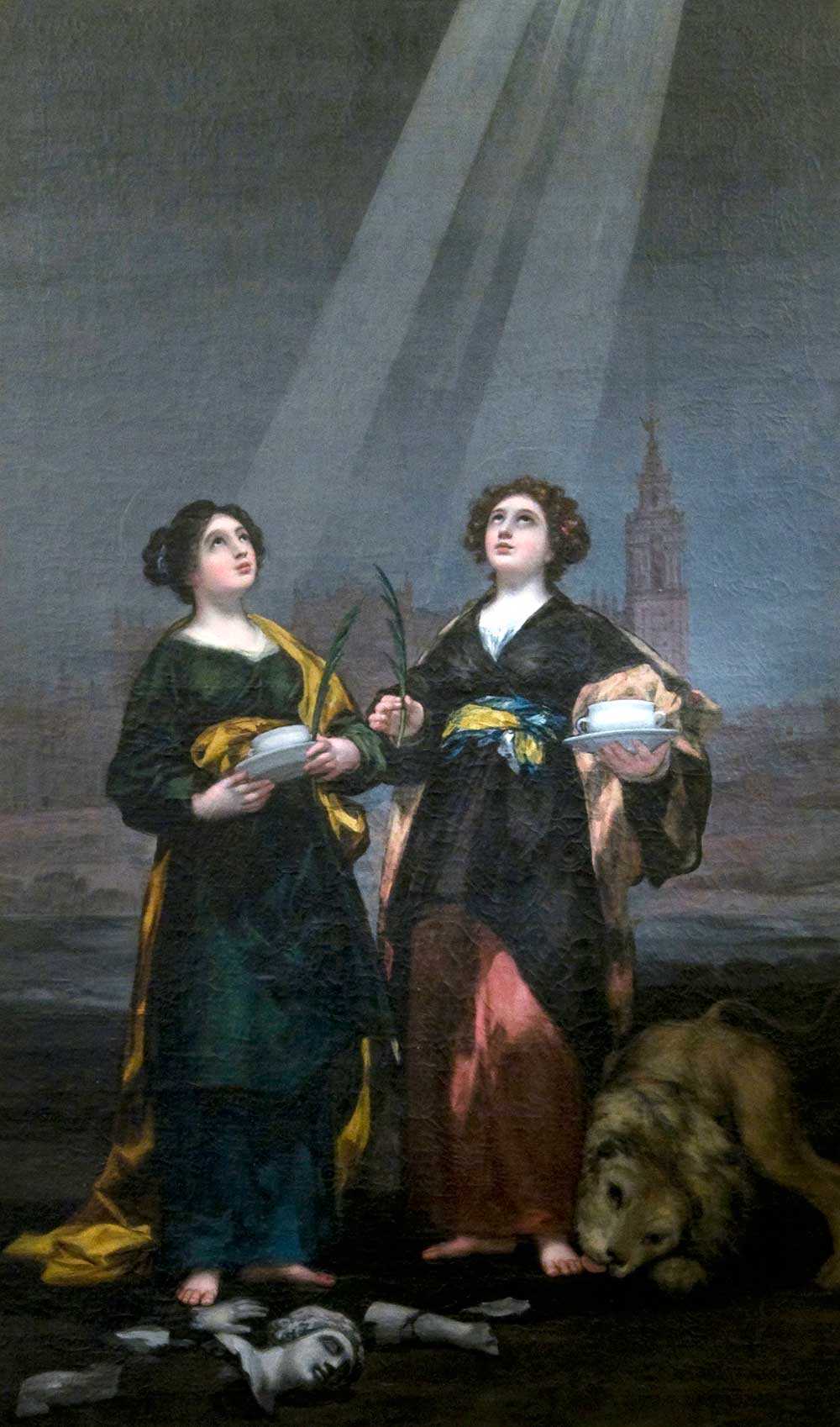 중앙에 고야의 <산타 후스타와 루피나>의 작품이 있다. 이들은 268년과 270년에 자매로 태어나 기독교 집안에서 성장했으며 그릇을 팔아 생계를 유지했다고 한다. 어느 날 이교도들의 축제에 사용할 비너스가 새긴 도자기의 제작을 요청받았으나 이를 거절하자 그들에게 끌려가 개종을 요구받았으나 단칼에 거부하였다.