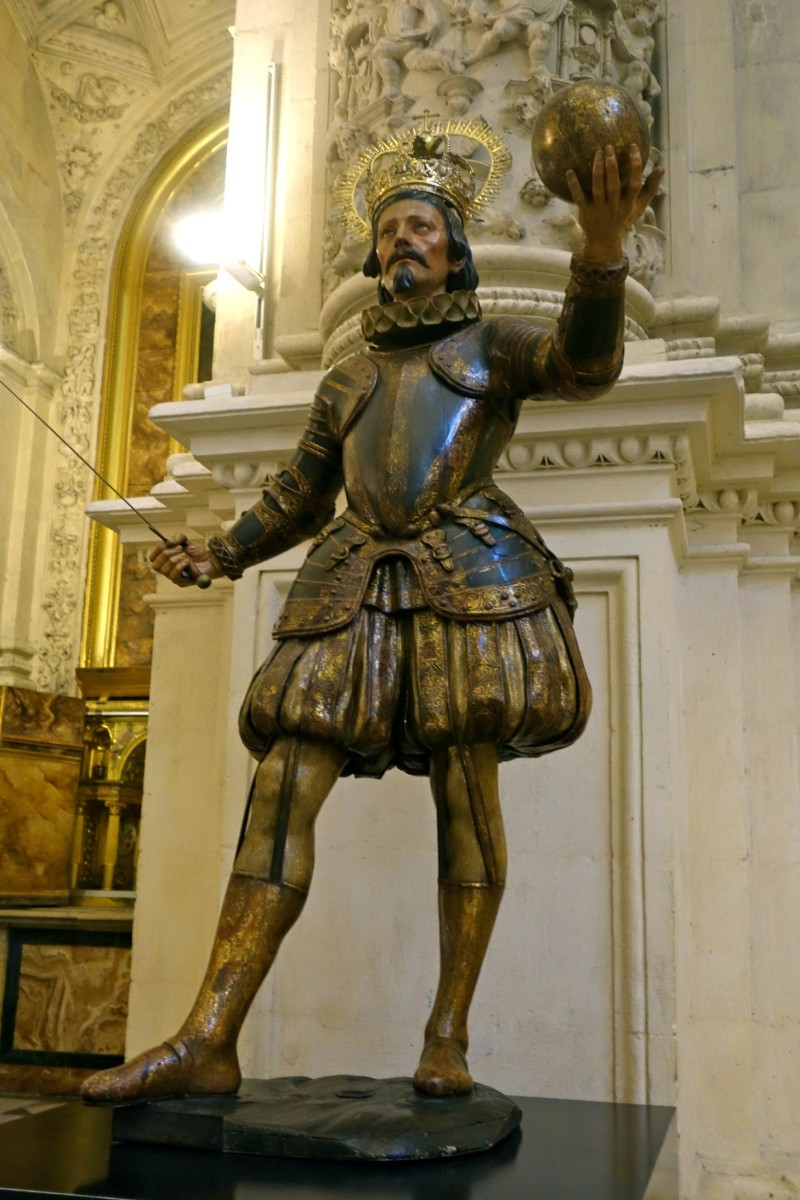 그 옆으로 성모 마리아 상과 페르난도 3세의 조각상이 있다. 페르난도 3세는 이슬람을 물리치고 기독교를 지킨 공로로 성인으로 추대되어 머리 위에 후광이 드리워져 있다.