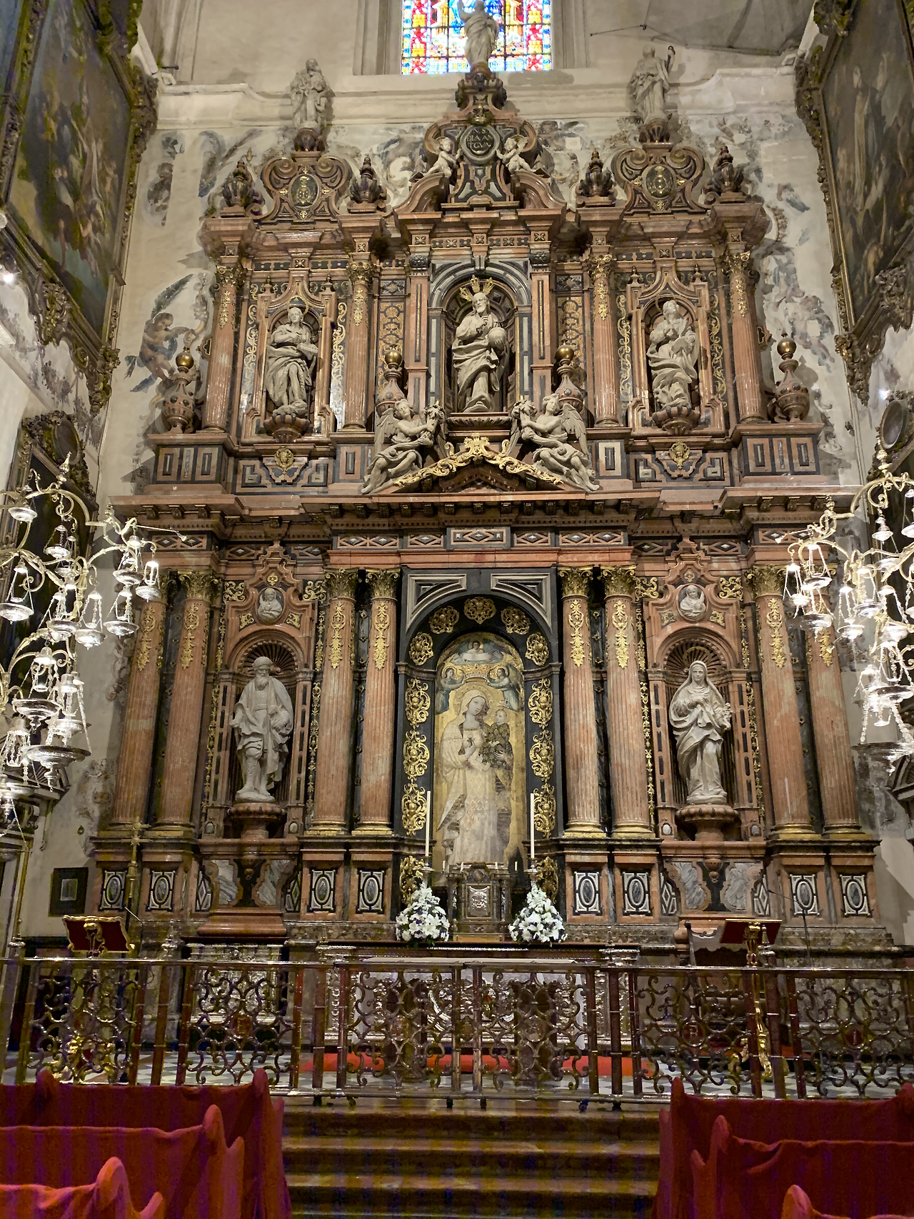 중앙에는 성녀 안티구아와 그의 아들이 그려진 프레스코화가 자리하고 있는데 이는 15세기 기존 모스크 대리석 벽에 그려진 것을 그대로 가져왔다고 한다. 이 작품을 모방한 성모자 그림은 스페인이 정복한 중남미 여러 성당에서도 볼 수 있다.