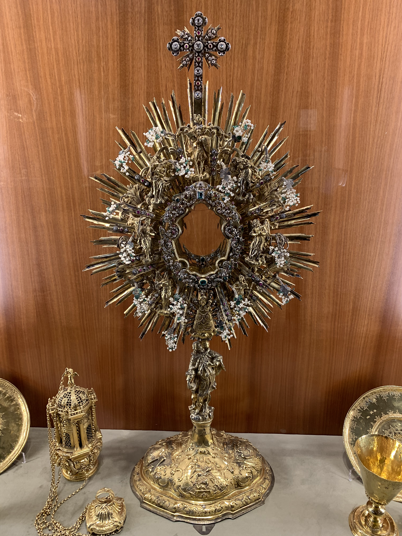 맞은편에 보이는 <성채현시대>는 이사벨 페로스 카로 부인이 기증한 것으로 18세기 금세공의 극치를 보여주고 있다. 가운데에 보면 성체를 안치하기 위한 안치대와 이를 고정하기 위한 투명 낚싯줄이 보인다. 테두리의 뾰족한 부분은 안치된 성체로부터 빛을 발사하는 모습을 표현한 것으로 이를 성광이라고 부르기도 한다.