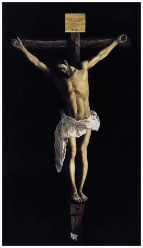 맞은편 벽면에 있는 1640년 스페인의 화가 수르바란의 <십자가 위의 그리스도>가 있다. 스페인의 카라바조로 불리는 그는 허식 없는 사실주의 작품을 그렸다. 작품에서 십자가에 못 박혀 돌아가신 예수님을 그는 검소한 구도로 그리며 엄숙한 신비로움을 보여주고 있다.