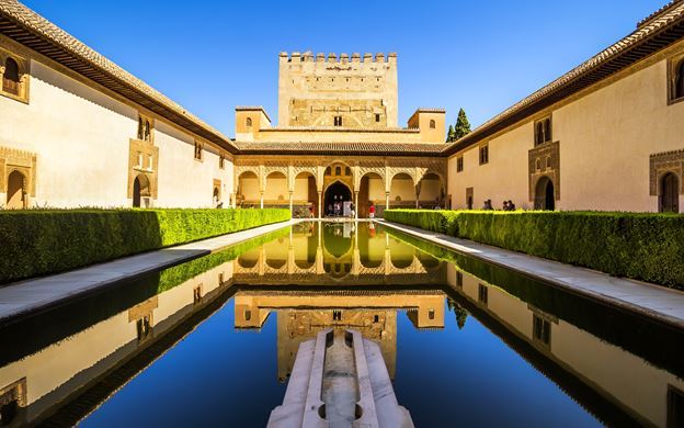 메카에서 출발하여 동쪽으로 향하던 이슬람 문화가 주변 문화를 수용하여 최고의 절정을 이룬 것이 17세기 무굴 제국의 타지마할이라고 하면 서쪽으로 북아프리카와 지중해 그리고 스페인의 문화를 집대성하여 꽃을 피운 것이 15세기 그라나다의 알함브라 궁전이다.