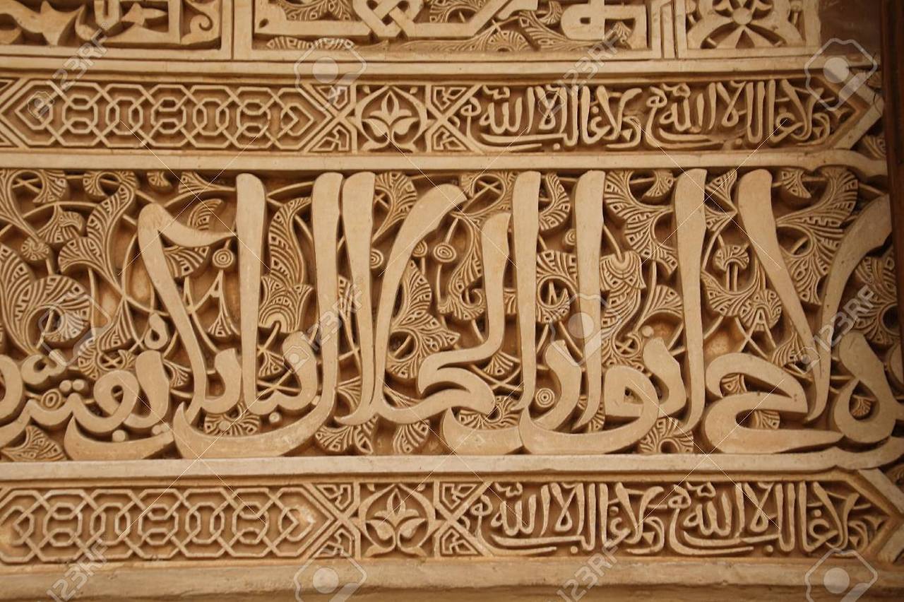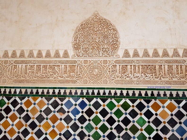 나스르 궁전에서 여행자를 매료시키는 것은 벽에 새긴 복잡한 비문으로 어떤 비문은 아름다운 시구이고 또 다른 비문은 알함브라 내에 있는 건물에 대한 정보를 제공한다. 벽에 새겨진 비문을 살펴보면 아래와 같은 비문이 보인다.