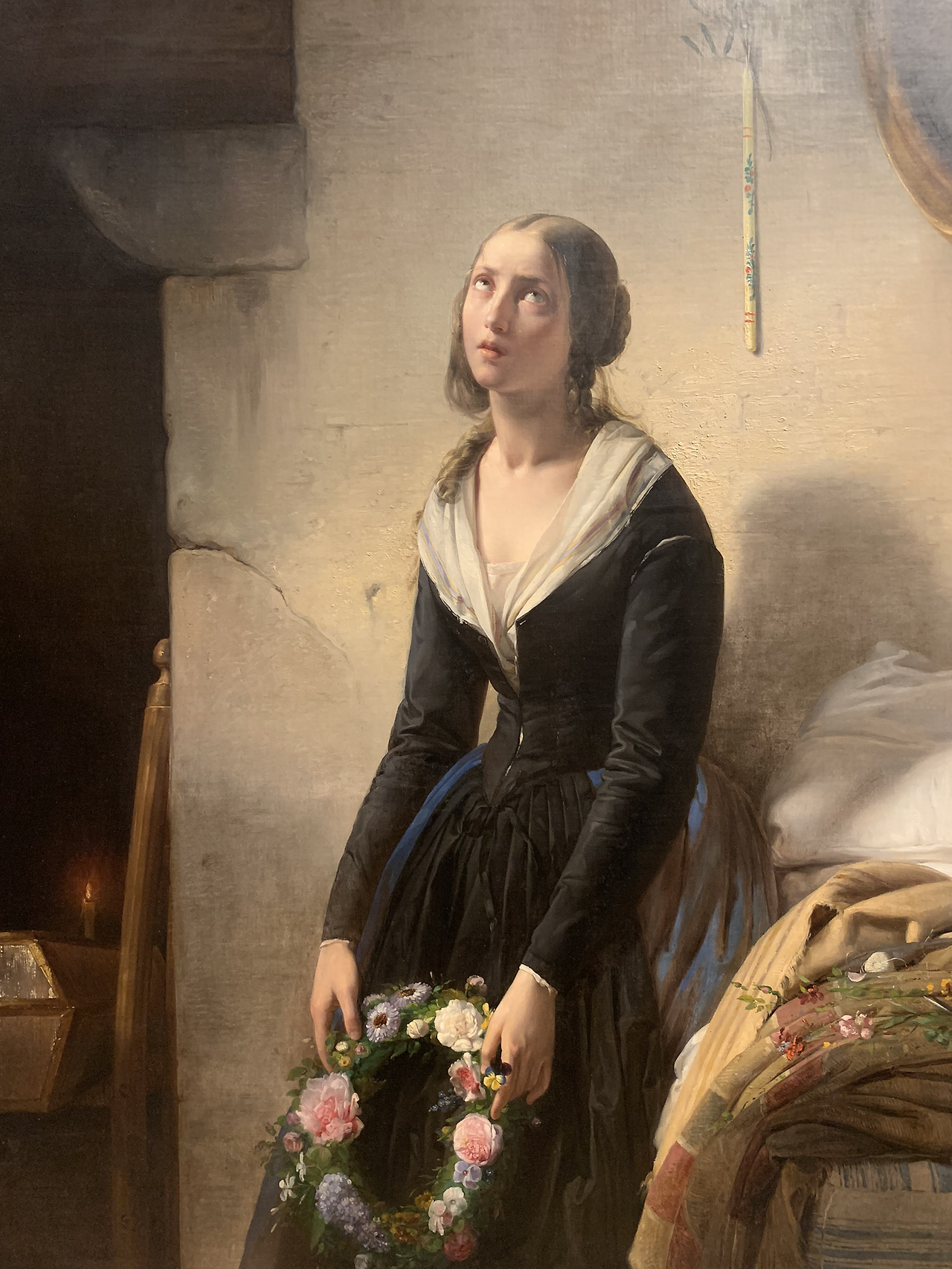 특히 작품의 왼쪽 슬퍼하는 마리아의 주름과 축 늘어진 눈매는 작품의 생동감은 물론 슬픔을 더욱 깊게 한다.