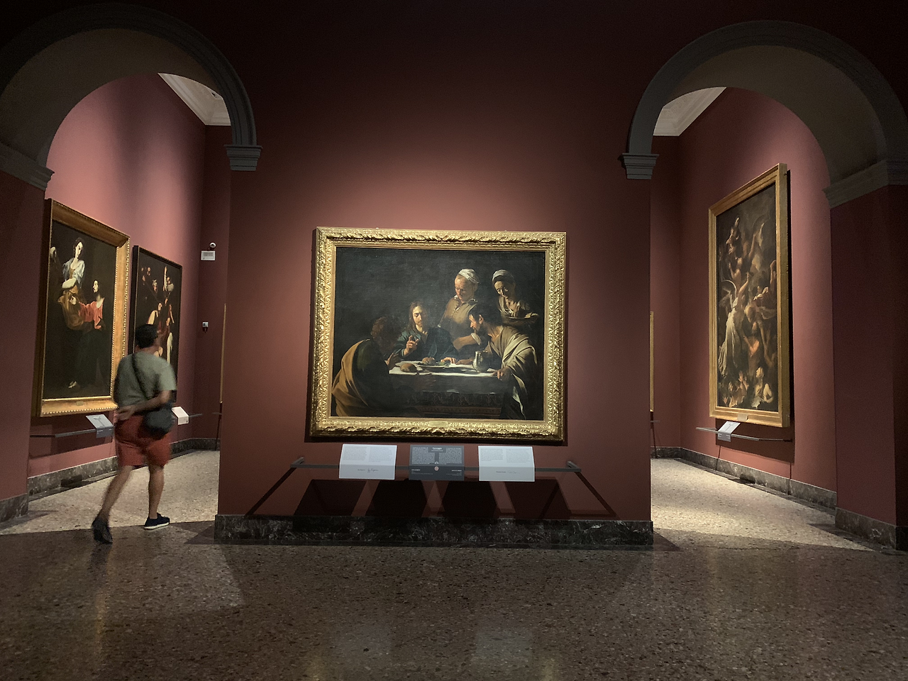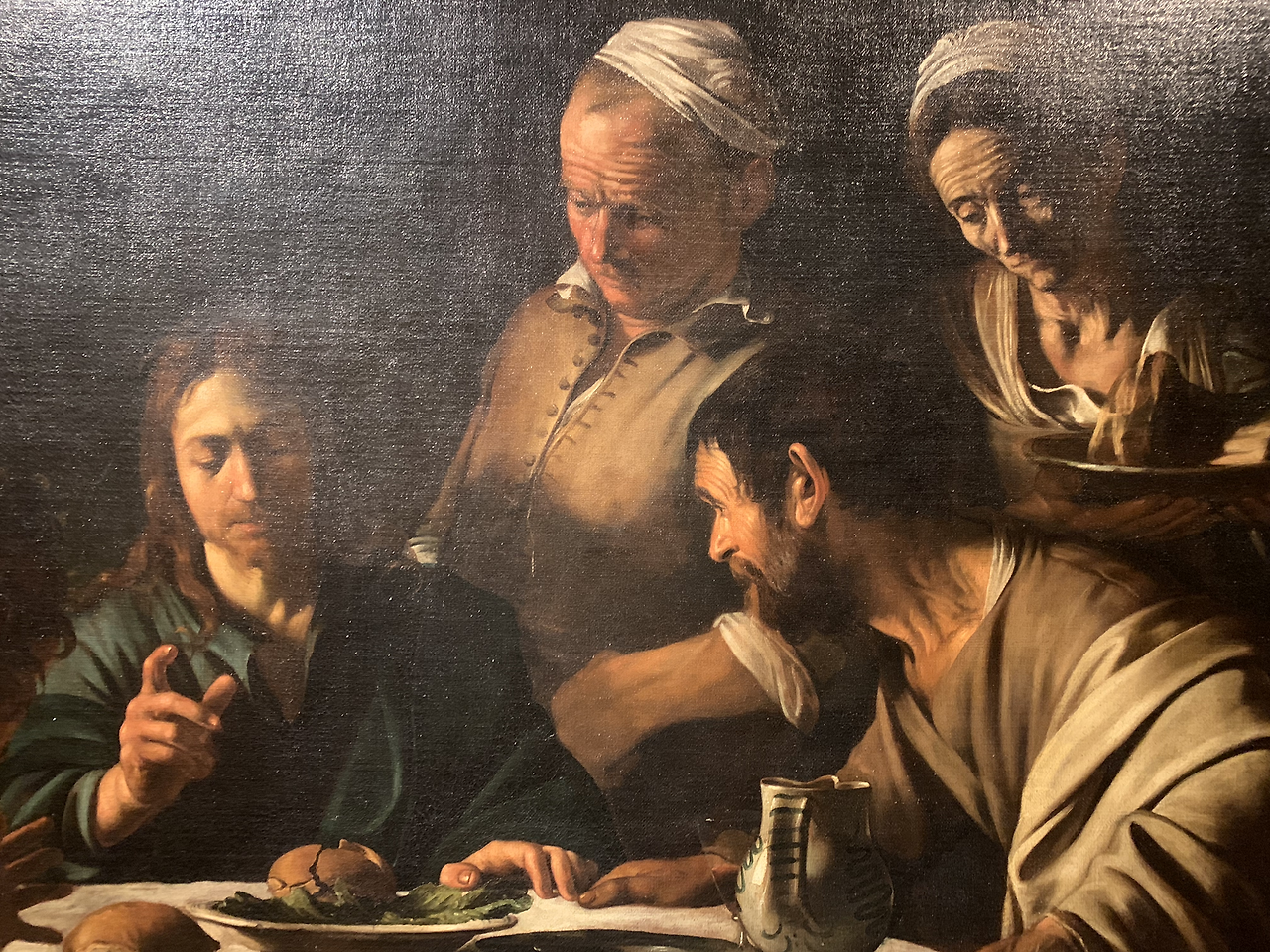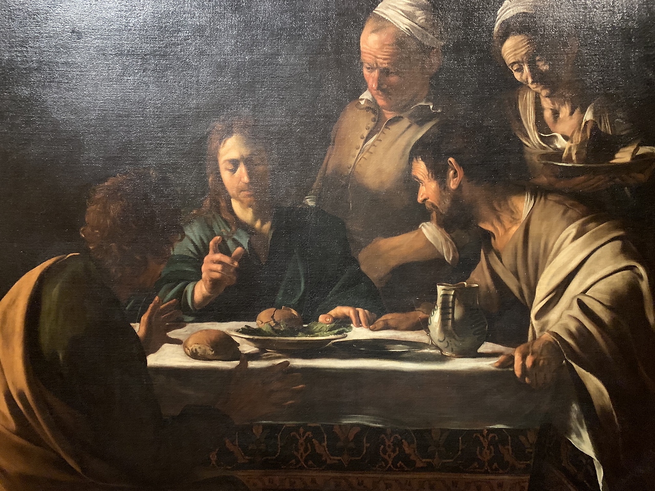 여러 작품을 지나 거장의 향기가 물씬 풍기는 작품은 카라바조의 <엠마오에서의 저녁식사>이다.