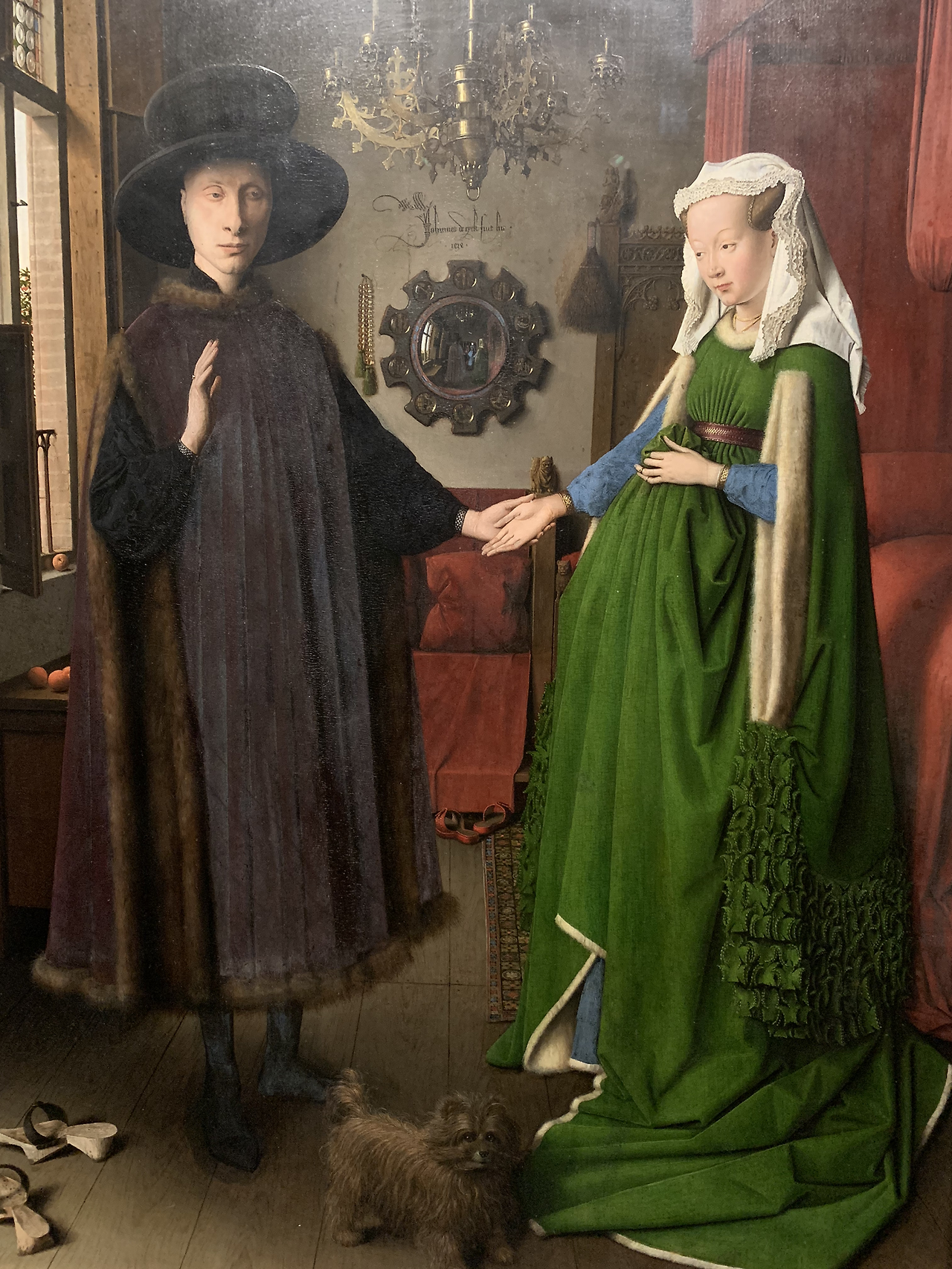 작품이 완성되고 작품 속 토라진 아내의 얼굴과 털끝까지 생생한 아내의 옷 그리고 아내를 늘 따라다니는 강아지를 본 순간 아르놀피니는 왈칵 눈물을 쏟아을 지도 모른다.